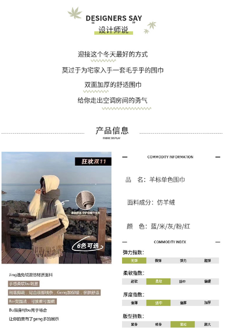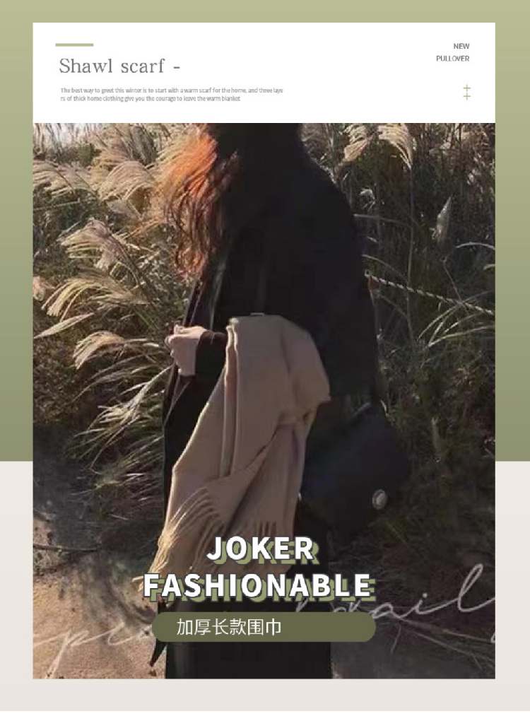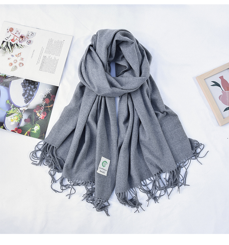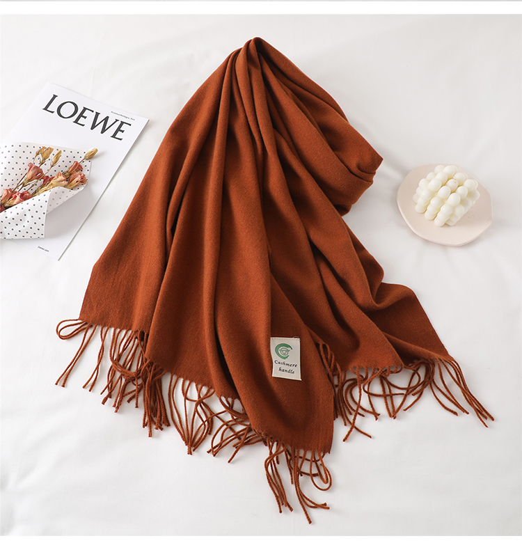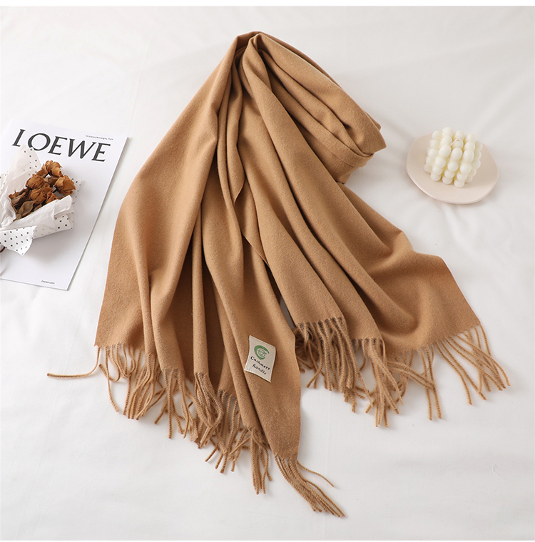 【加厚仿羊绒围巾】秋冬纯色超柔软保暖围巾 韩版披肩单色流苏长短两用围脖15色