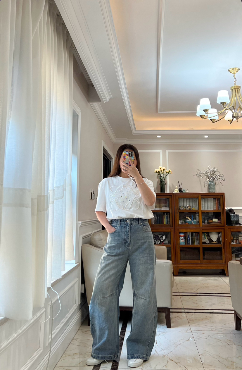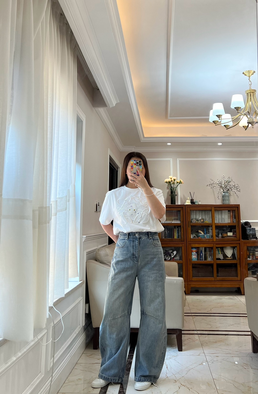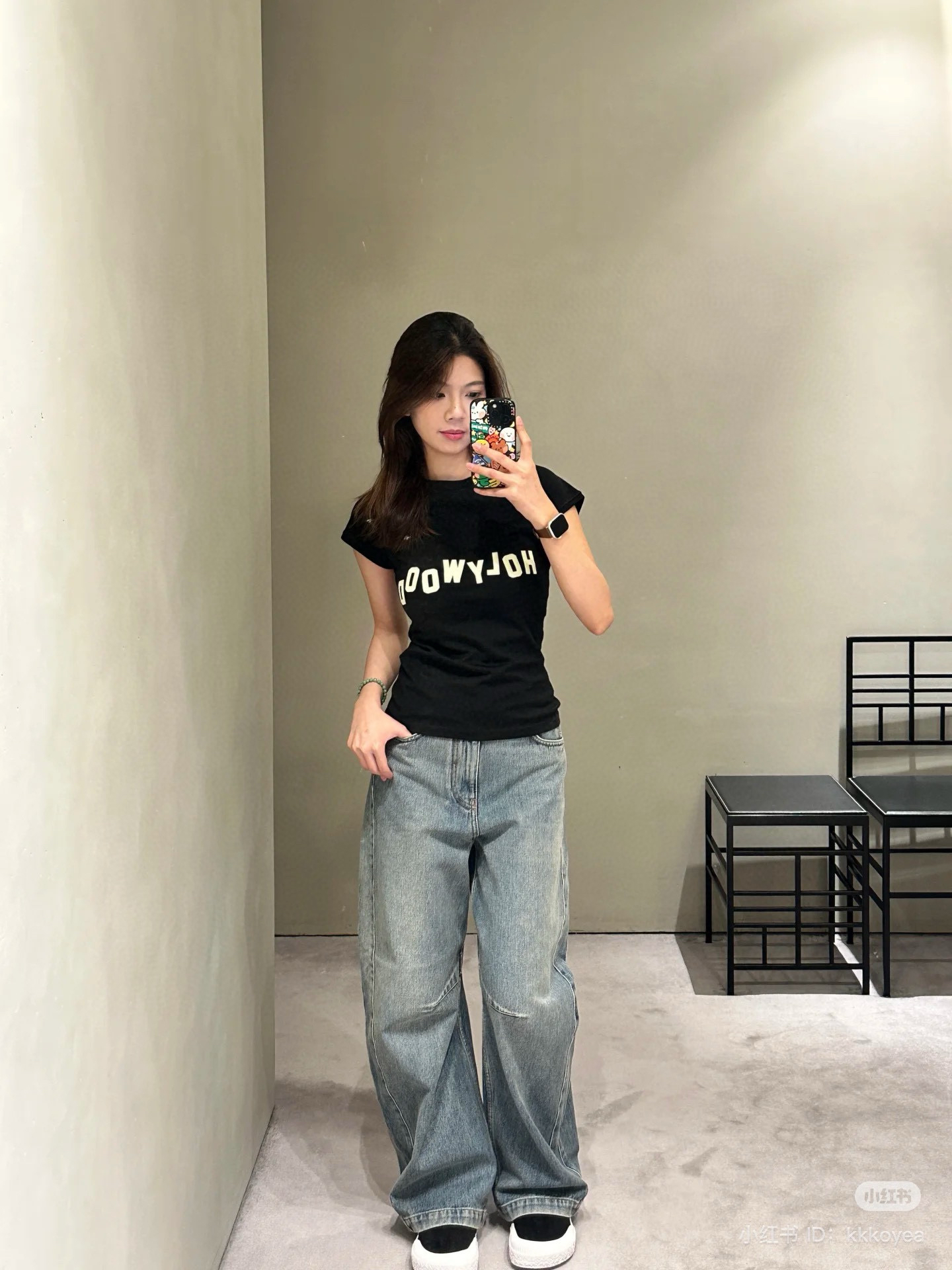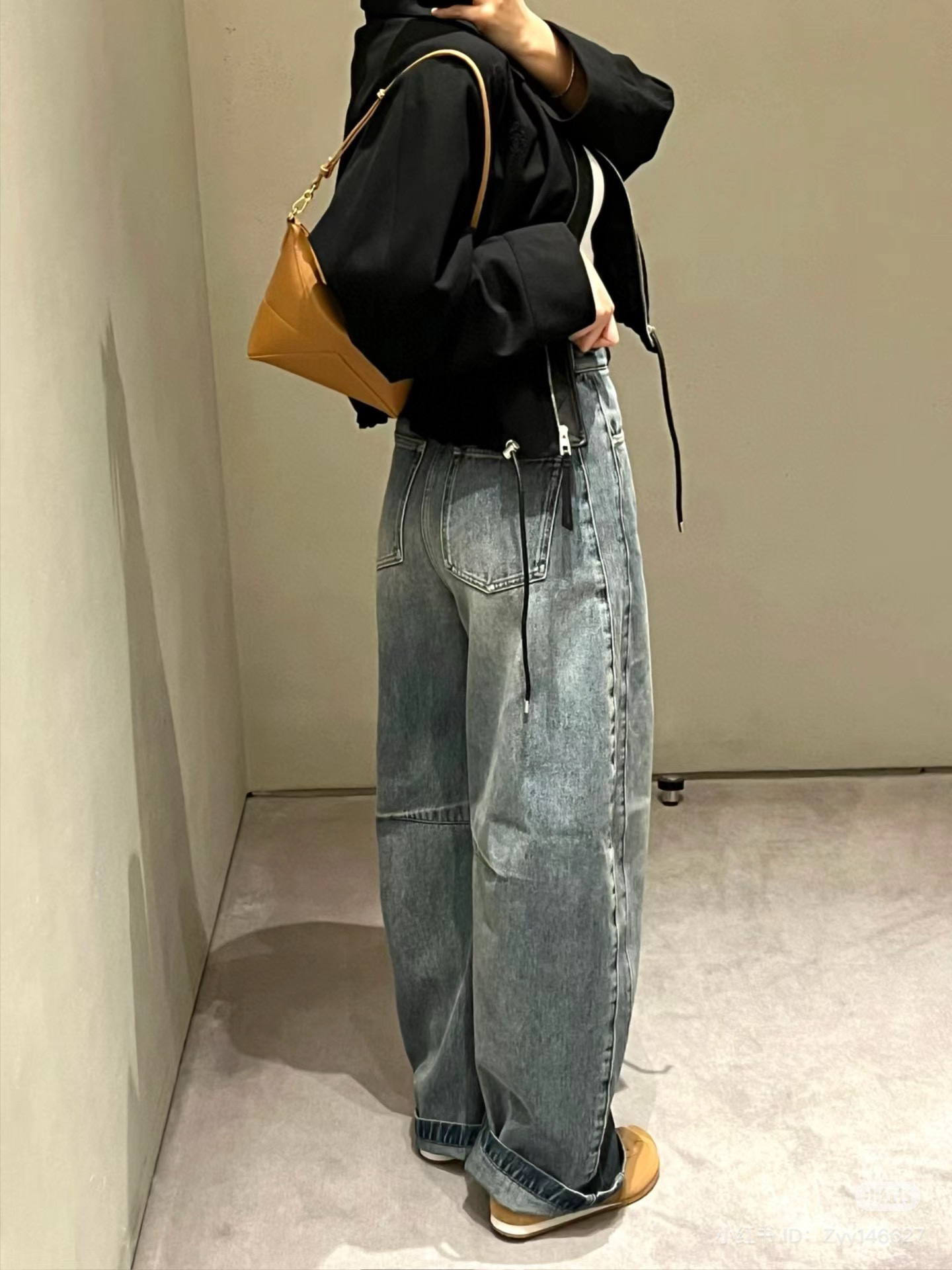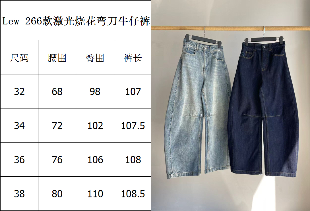 318-5 现货 lew渠道货 大幂幂 酵素水洗牛仔 略微挺阔弯刀阔腿裤 弯月镰刀牛仔裤 深色/浅色