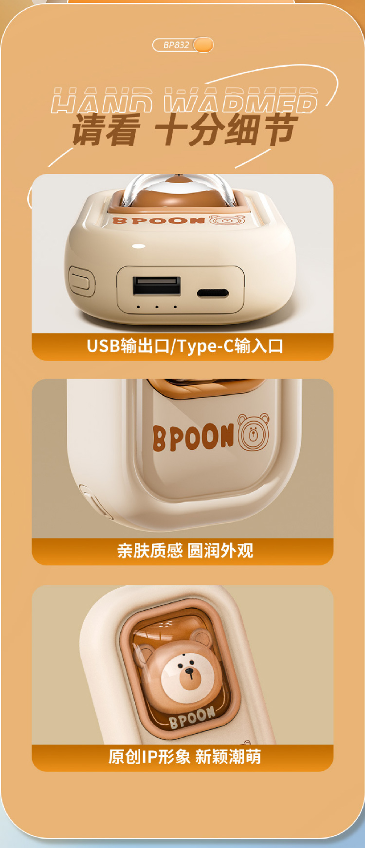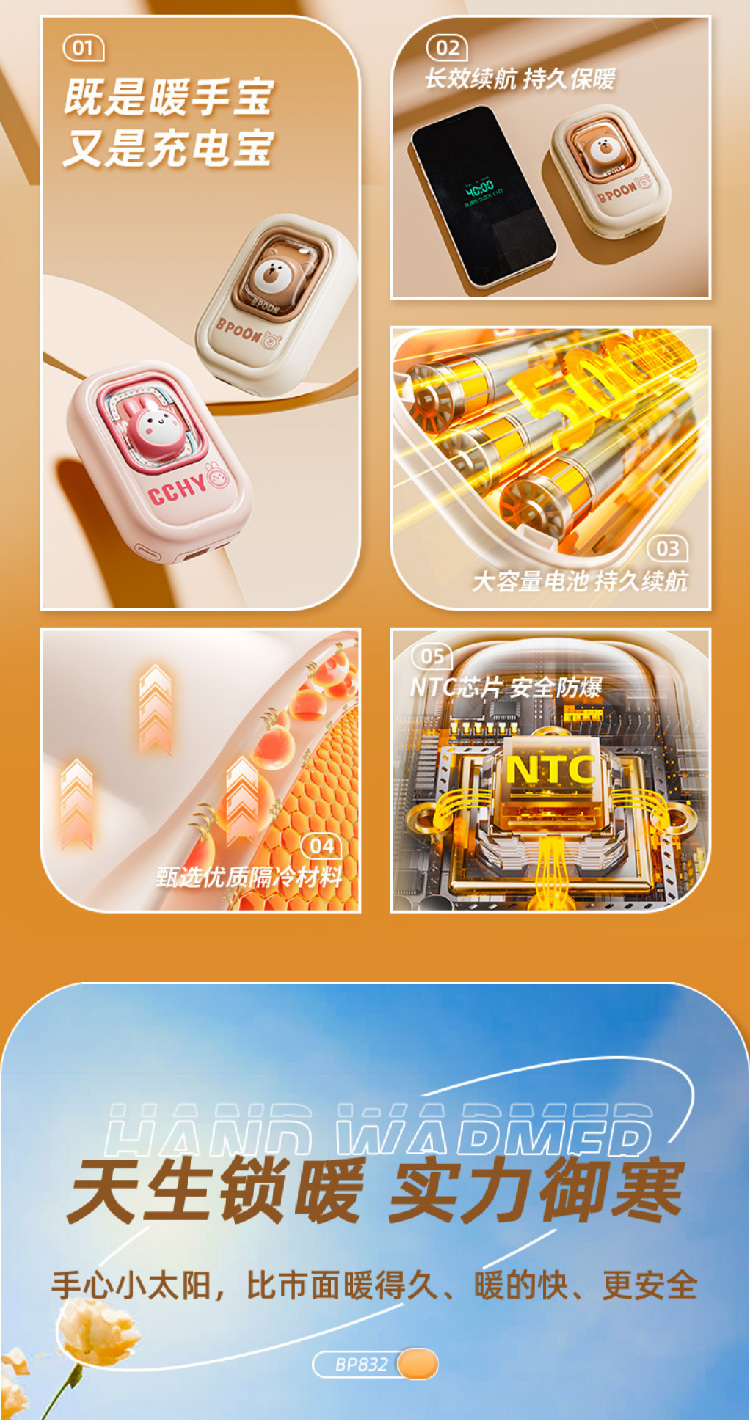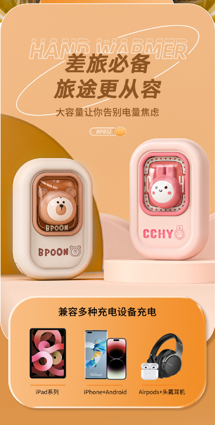 【熊兔暖手宝】新款暖手宝充电宝二合一 女生迷你随身便携式暖宝宝暖手宝