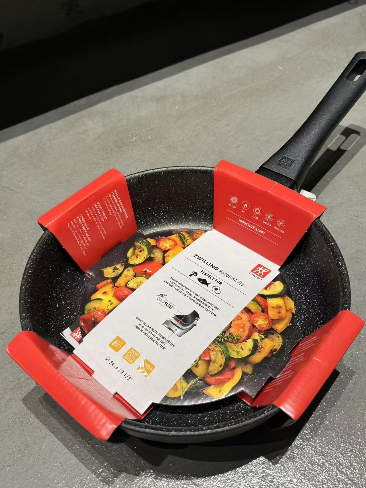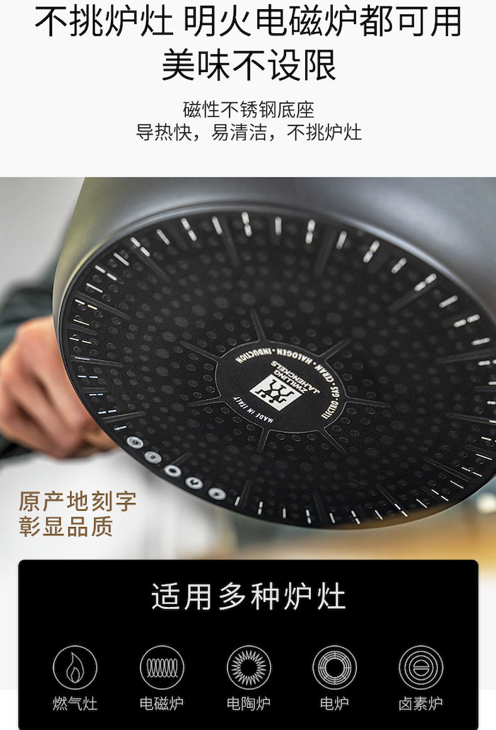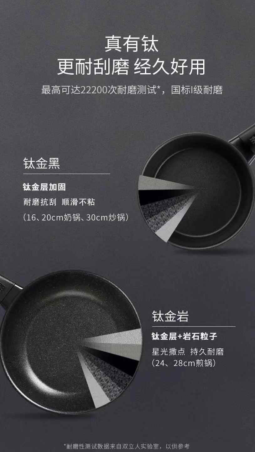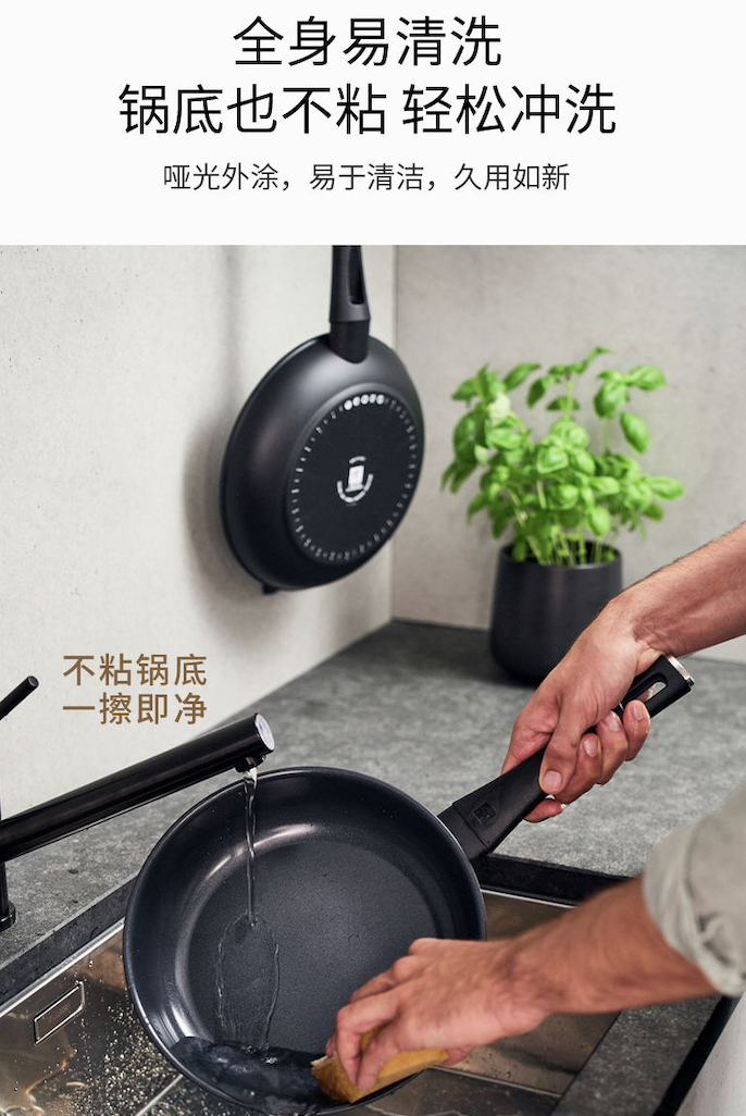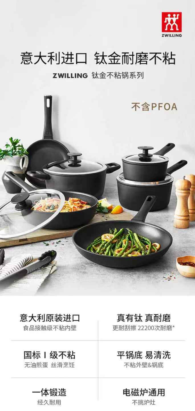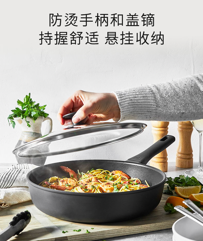 【双立人 不粘深煎锅】【赠送双立人高透玻璃锅盖】高纯度铝制不粘锅!22200次耐磨钛金层,5大国际认证!不含PFOA.国标1级不粘.耐酸性腐蚀24cm、30cm家用黄金尺寸