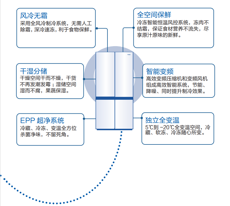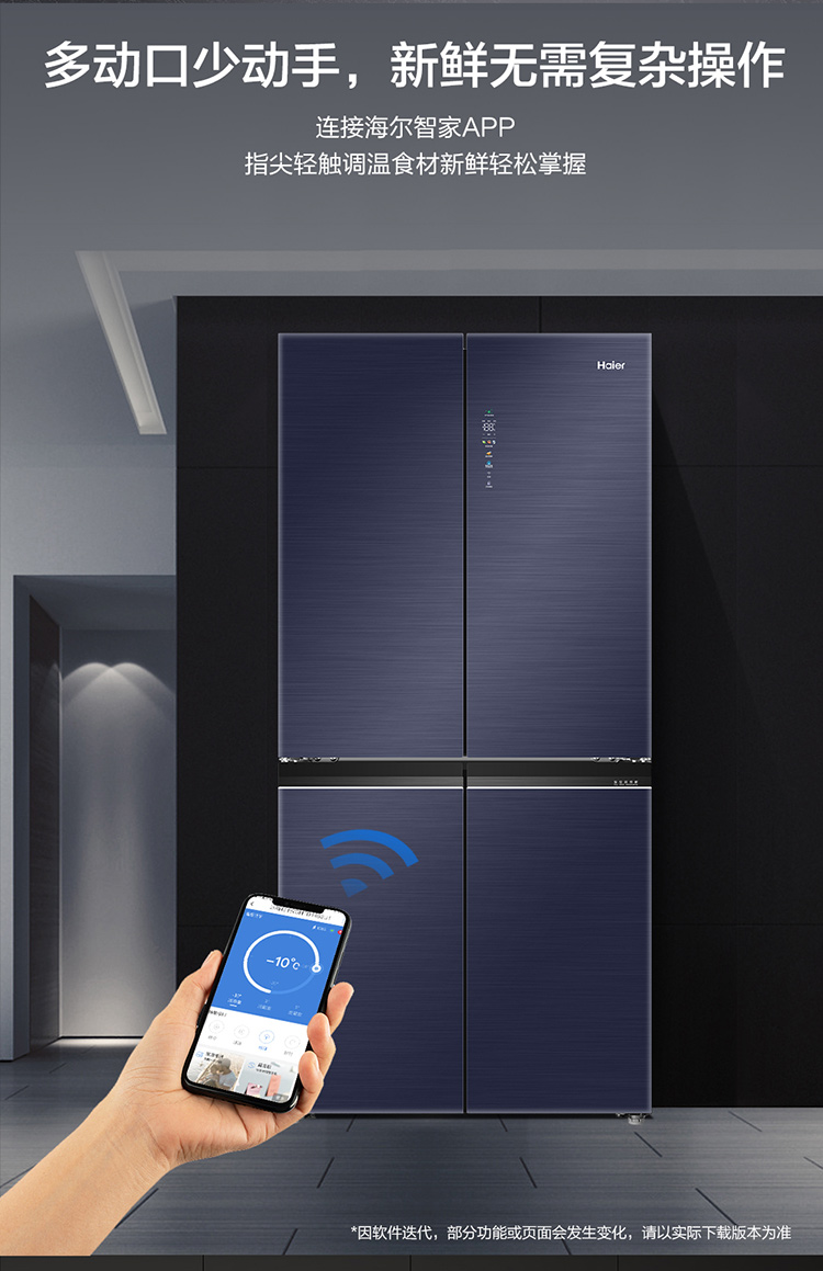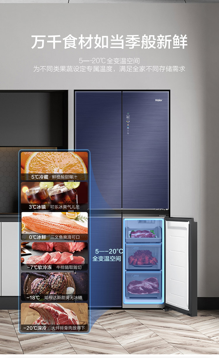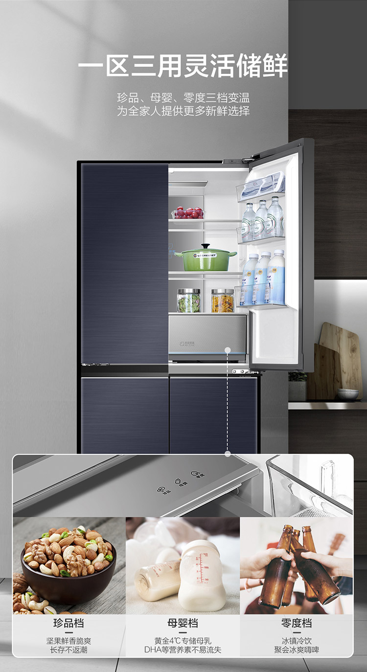 海尔冰箱家用461升十字对开门四开门零嵌超薄嵌入式平隐式新一级能效全空间保鲜智能电冰箱EPP超净变频 461升零嵌宽幅变温461WGHTD14B2U1