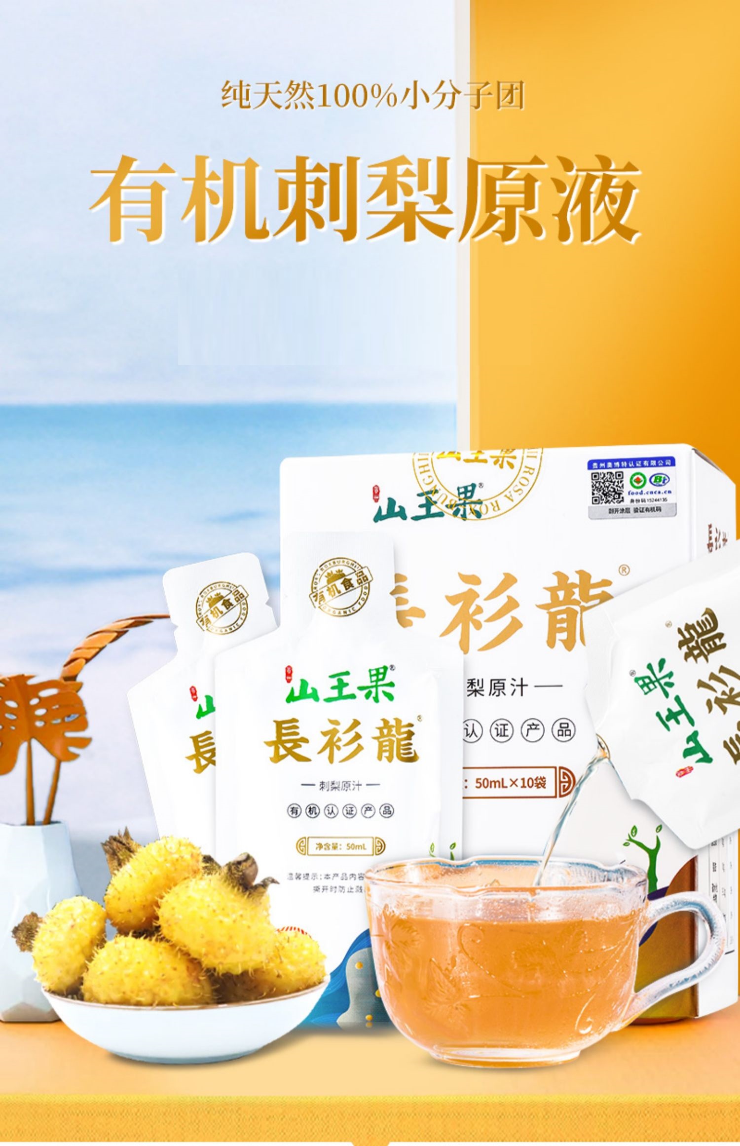 组件:山王果有机刺梨原汁50ml*10袋/盒,共12盒