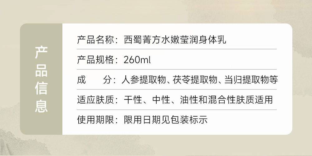 西蜀菁方水嫩莹润身体乳 复方草本植萃保湿乳 长效持久保湿润肤止痒 改善肤质孕妇可用