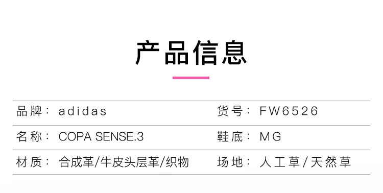 阿迪达斯 COPA SENSE.3 MG中端欧洲杯配色男足球鞋FW6526