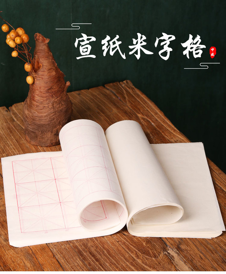 中盛画材四尺四开米字格半生宣熟毛笔书法用练习净皮国画宣纸批发