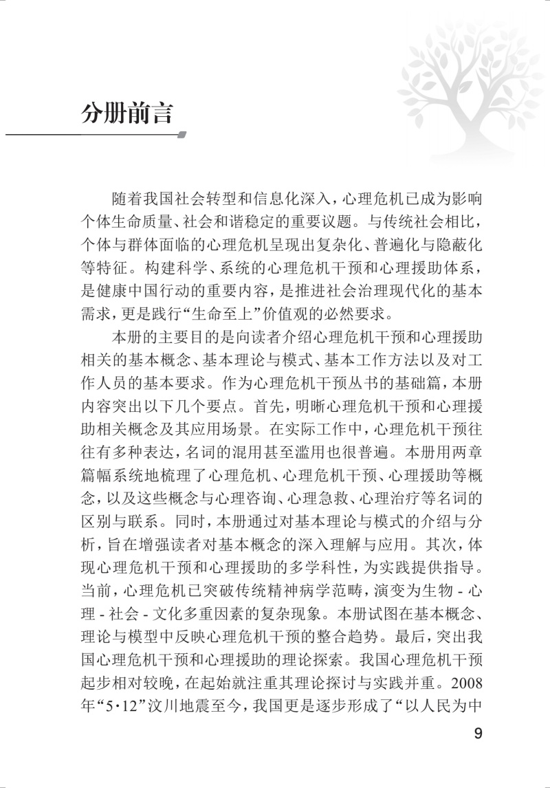 本分册聚焦于心理危机干预和心理援助的基础理论,从什么是心理危机、如何做好心理危机下受害人的危机干预与心理援助、如何贯彻危机干预与心理援助操作过程中的注意事项与伦理议题、怎样培养好心理危机干预人员和心理援助工作者以及如何在援助人员执行心理帮扶工作的过程中指导他们避免因助人而受到伤害这5个角度全面、准确、完整、系统地阐明了心理危机干预和心理援助的基础理论知识,逻辑清晰、理论翔实,能够帮助初学者快速了解到什么是危机、心理危机、心理危机干预与心理援助并对相关领域的现状与进展有快速地把握,具有高度的实用价值。