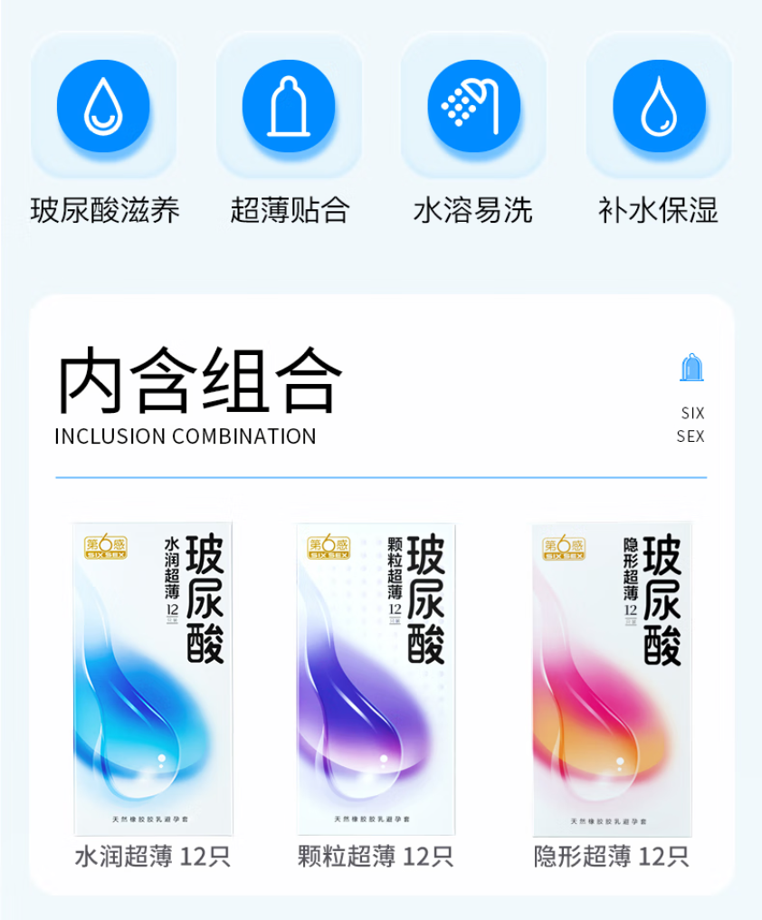 第六感避孕套玻尿酸36只情趣超薄安全套 带刺大颗粒男女计生成人用品