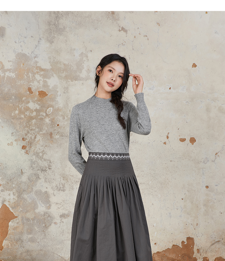 Famecoco范可儿半身裙纯棉腰边设计感刺绣FAB6HA013