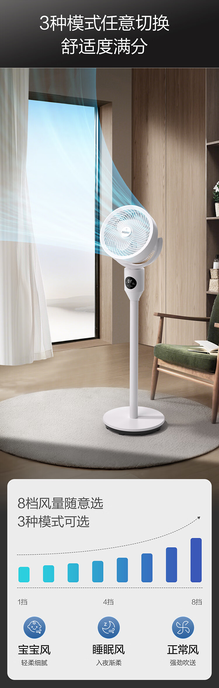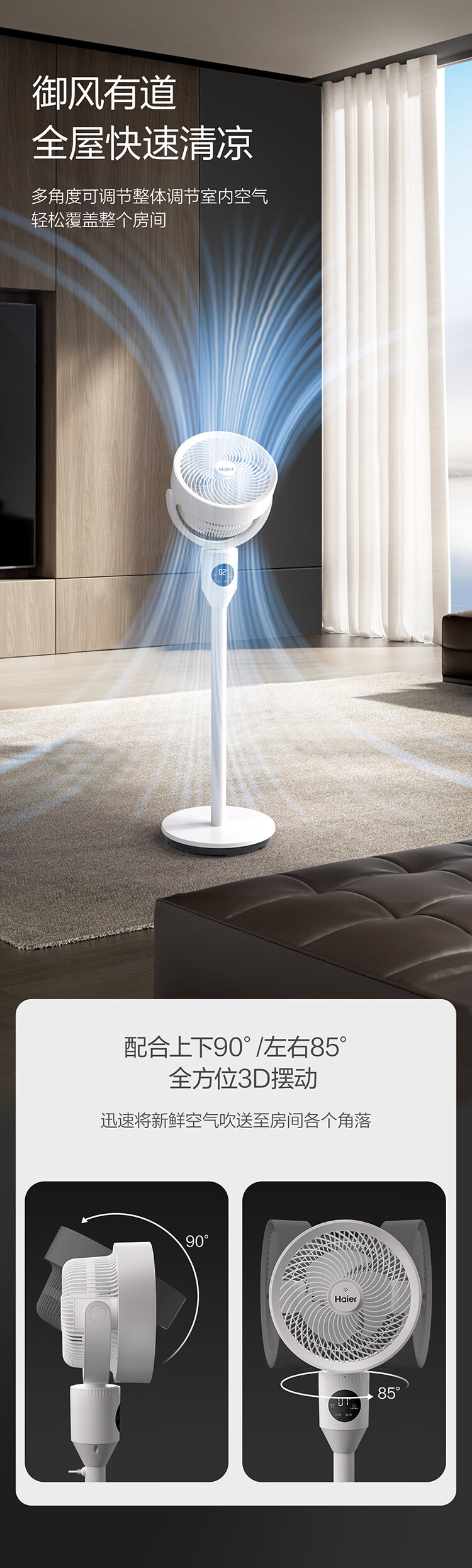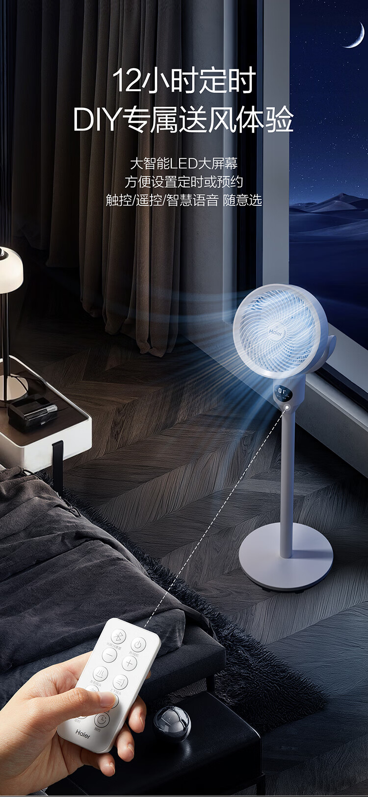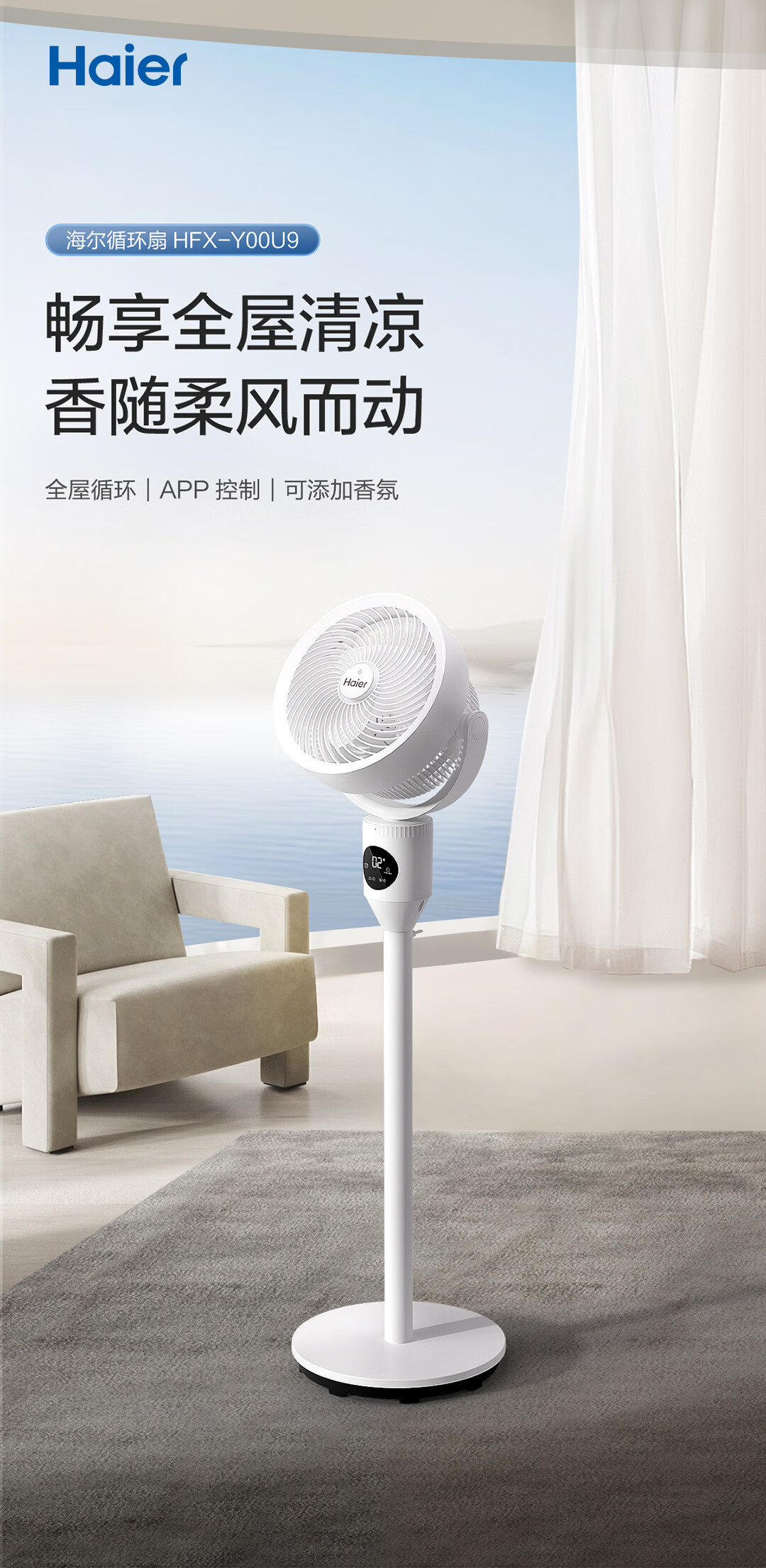 海尔(Haier)空气循环扇手机APP语音遥控香薰抑菌交流定频电风扇家用卧室风扇落地扇台式小风扇空调扇HFX-Y00U9
