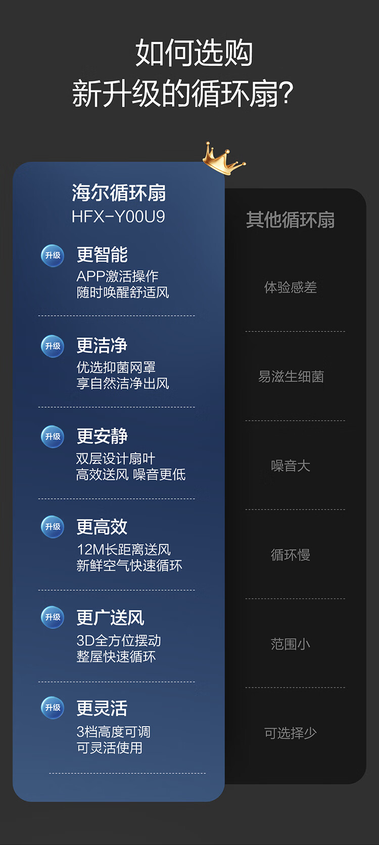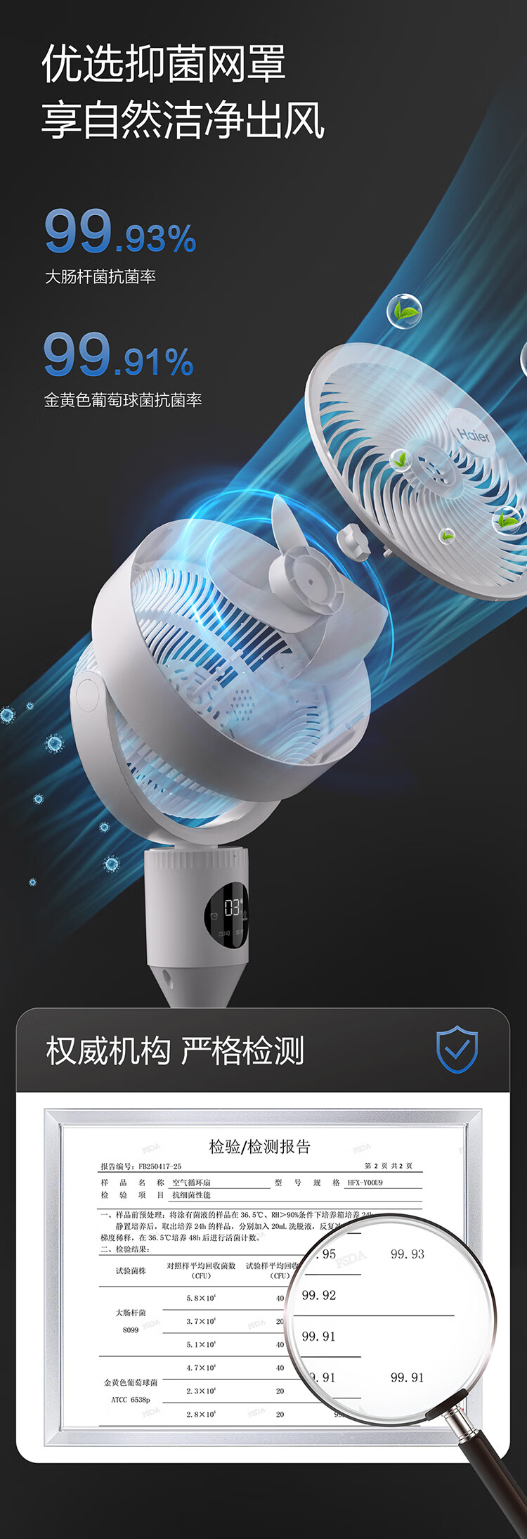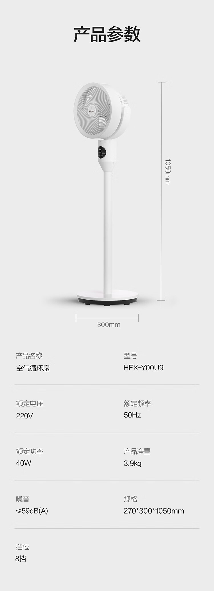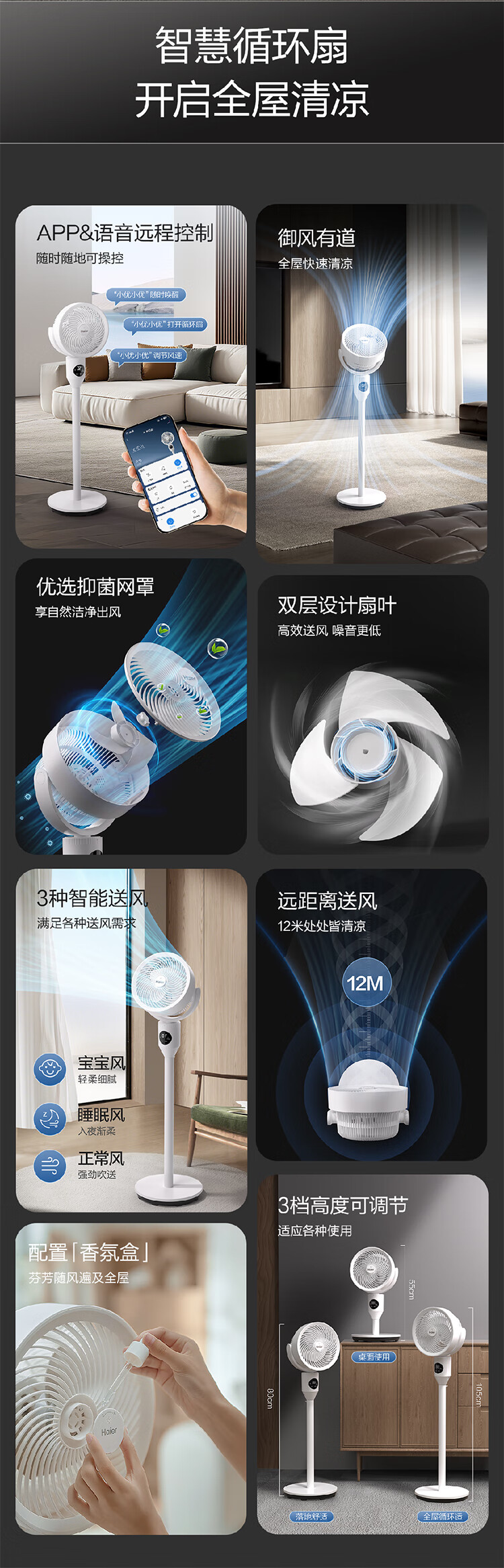 海尔(Haier)空气循环扇手机APP语音遥控香薰抑菌交流定频电风扇家用卧室风扇落地扇台式小风扇空调扇HFX-Y00U9