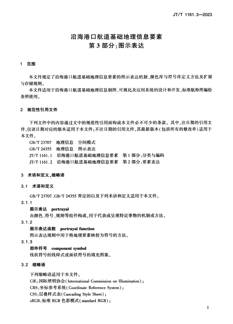 书名:沿海港口航道基础地理信息要素 第3部分:图示表达(JT/T 1161.3—2023)