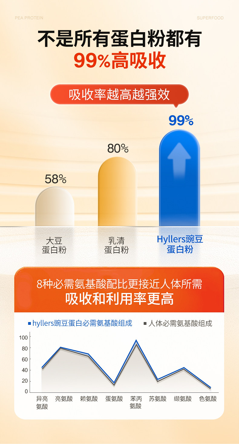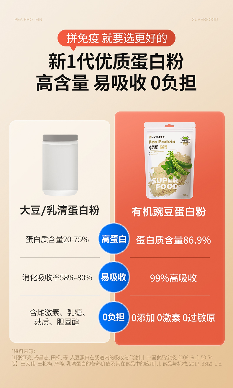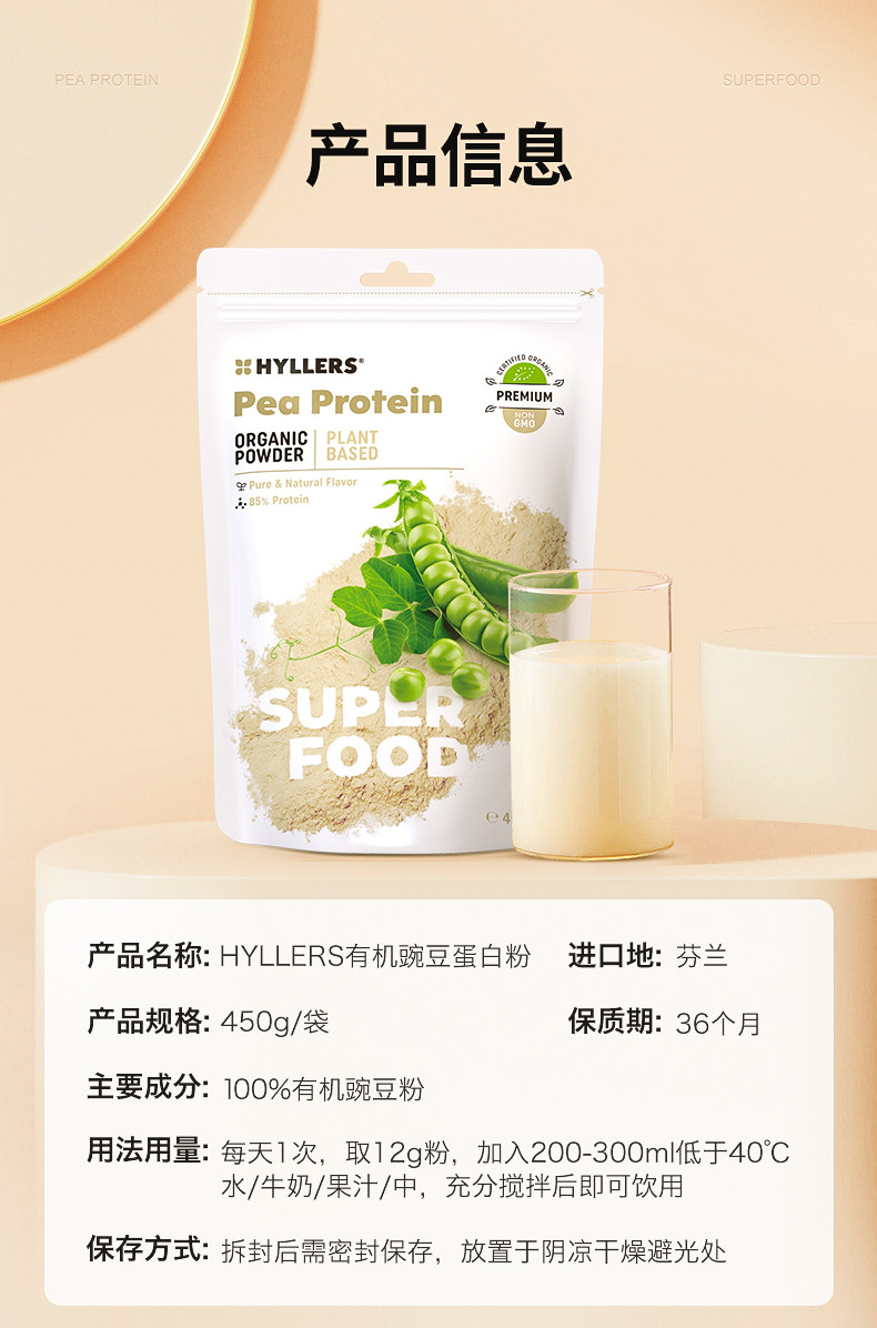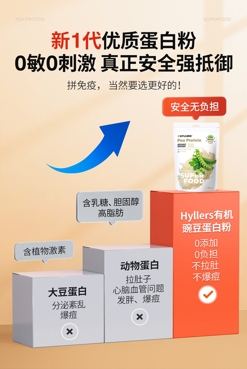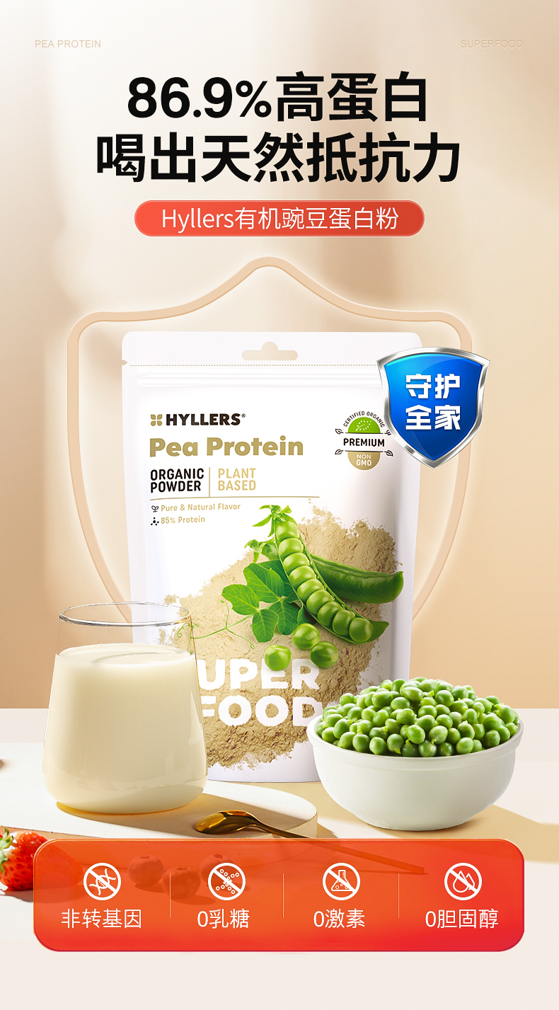 Hyllers有机豌豆蛋白粉女性健身增肌减脂塑形非乳清蛋白体重管理
