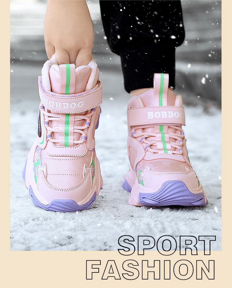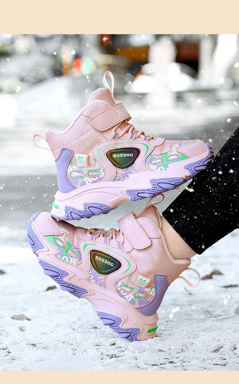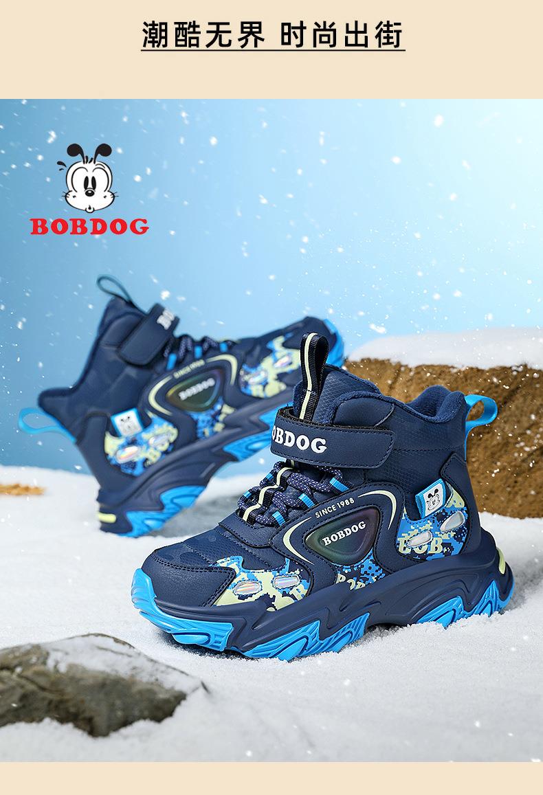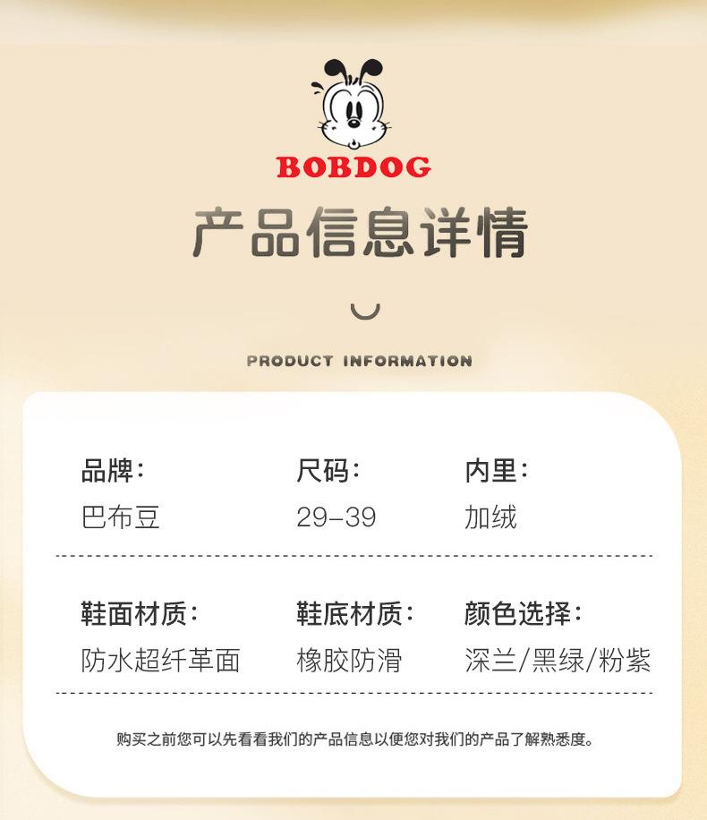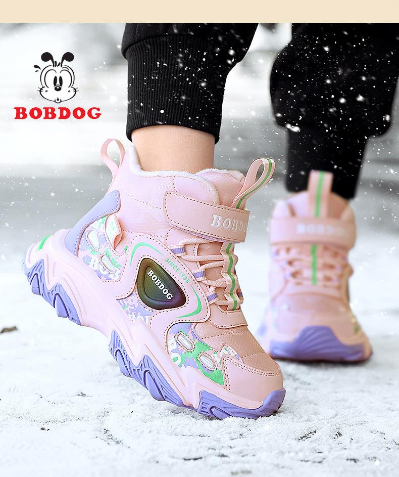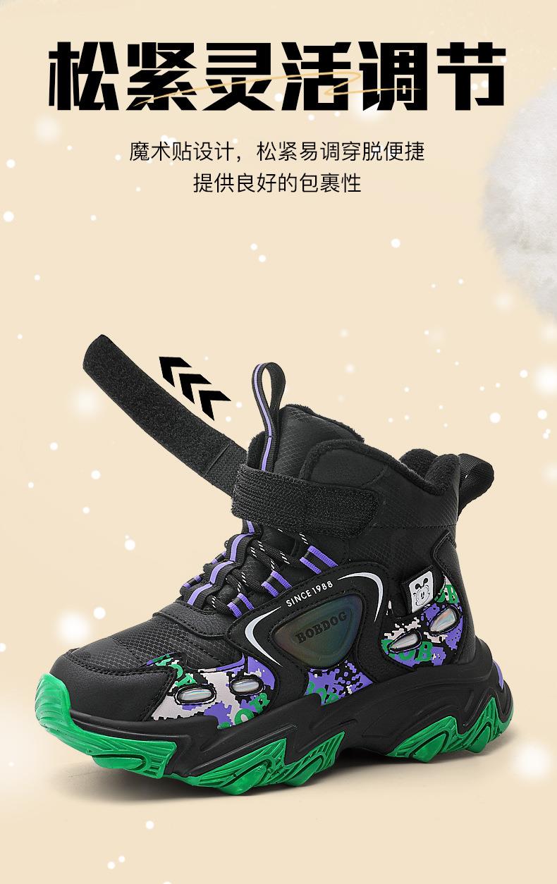 巴布豆儿童雪地靴冬季新款男女童皮面防水防风加绒保暖户外大棉鞋