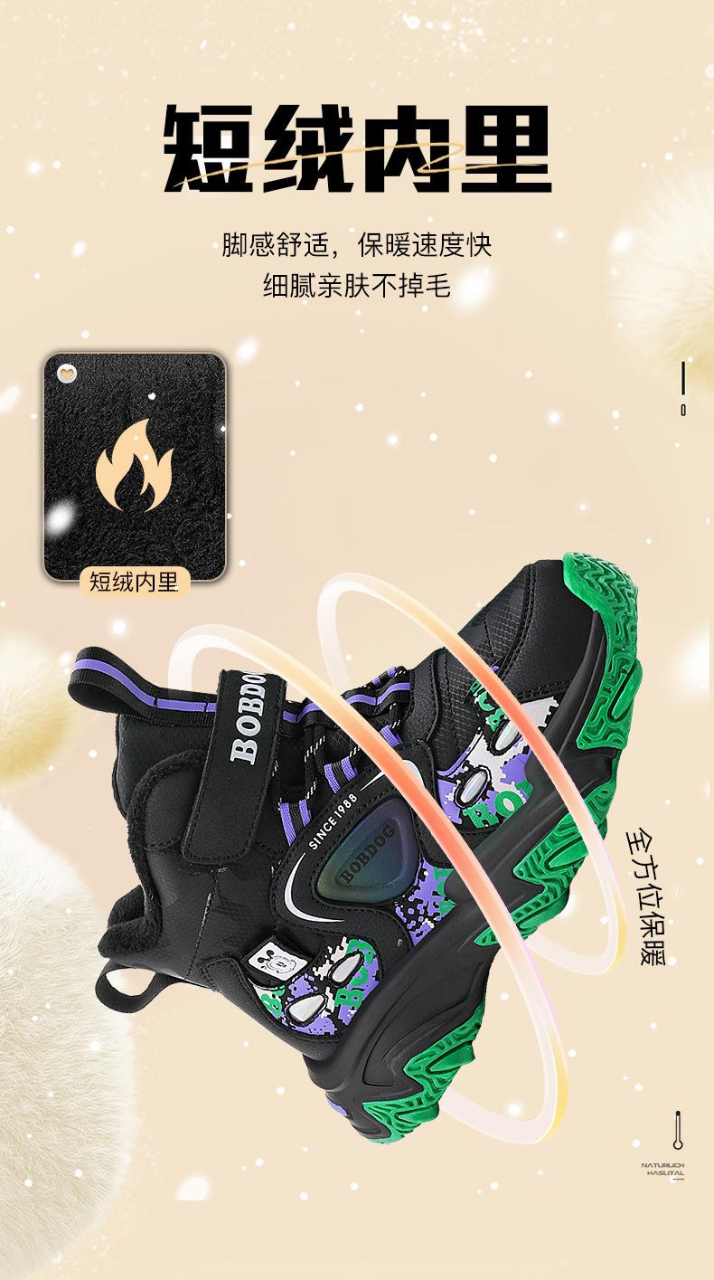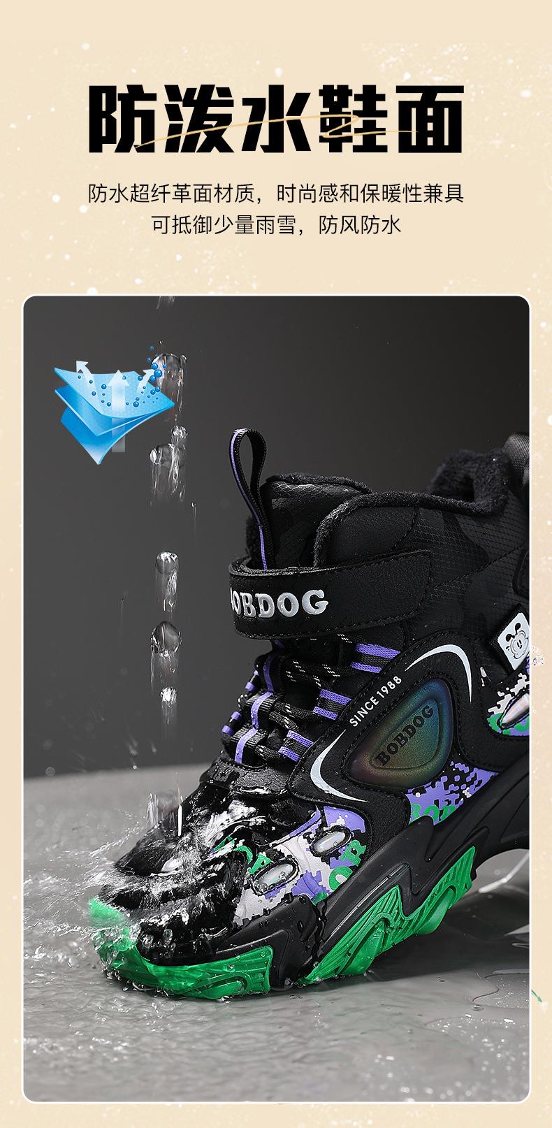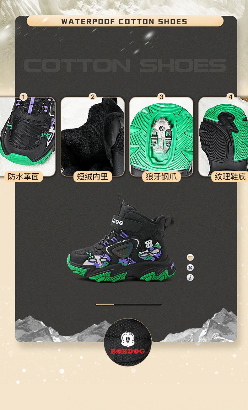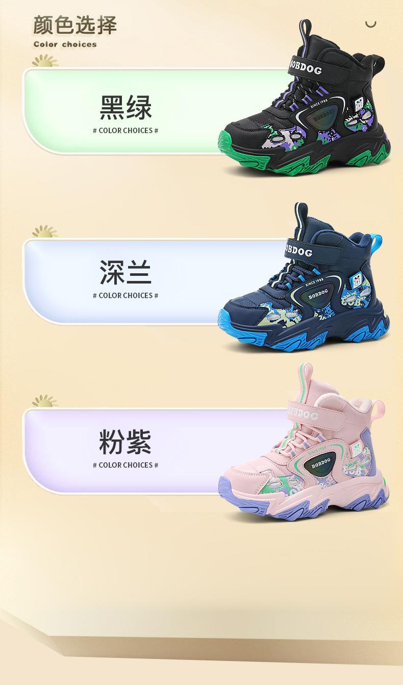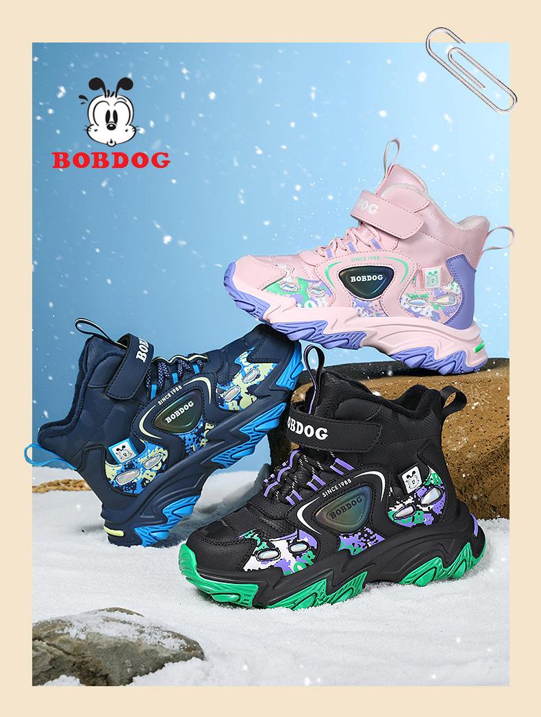 巴布豆儿童雪地靴冬季新款男女童皮面防水防风加绒保暖户外大棉鞋