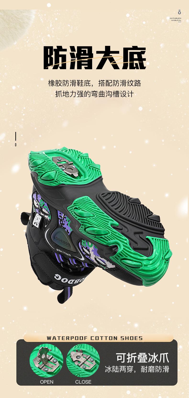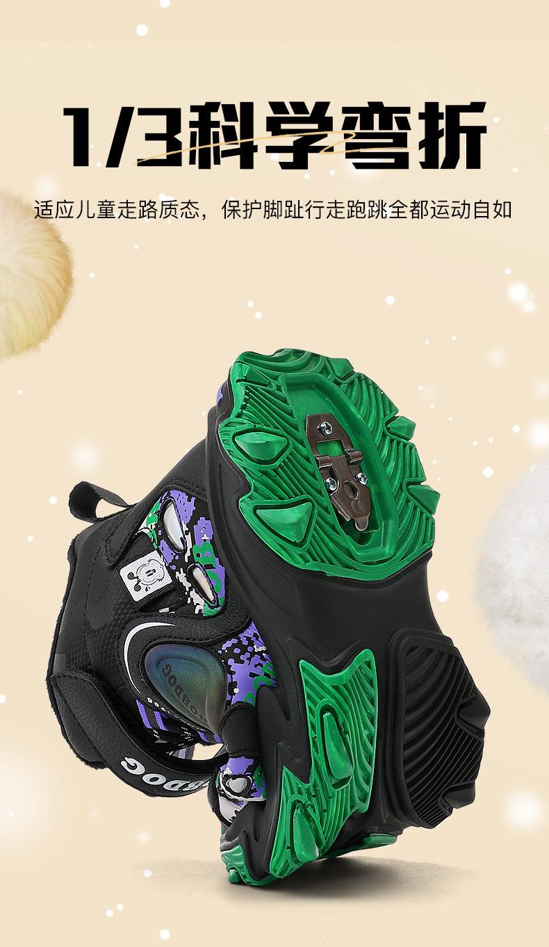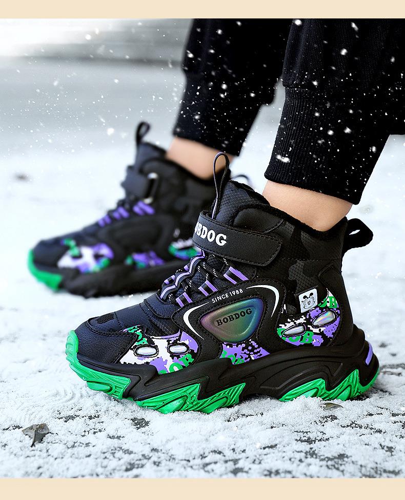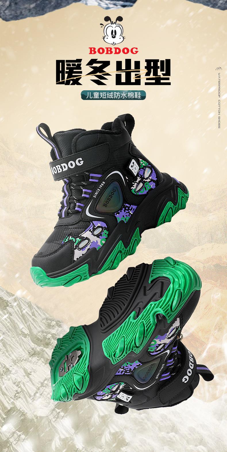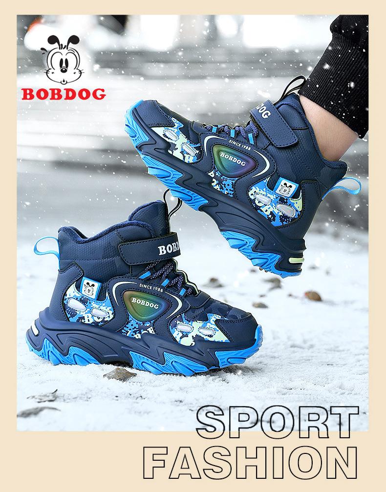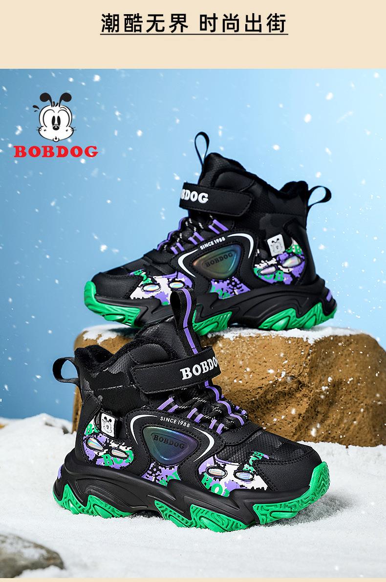 巴布豆儿童雪地靴冬季新款男女童皮面防水防风加绒保暖户外大棉鞋