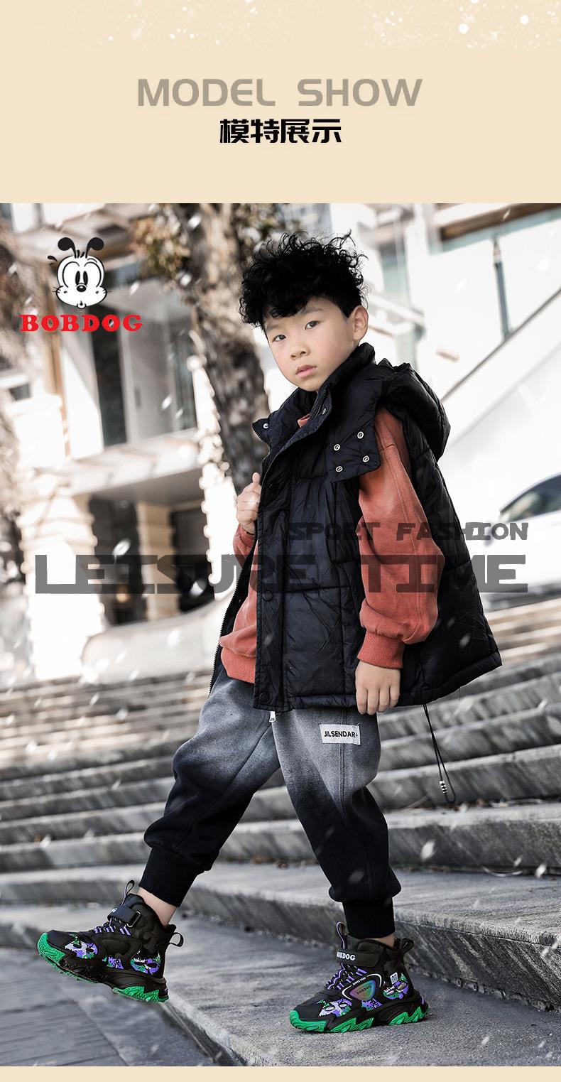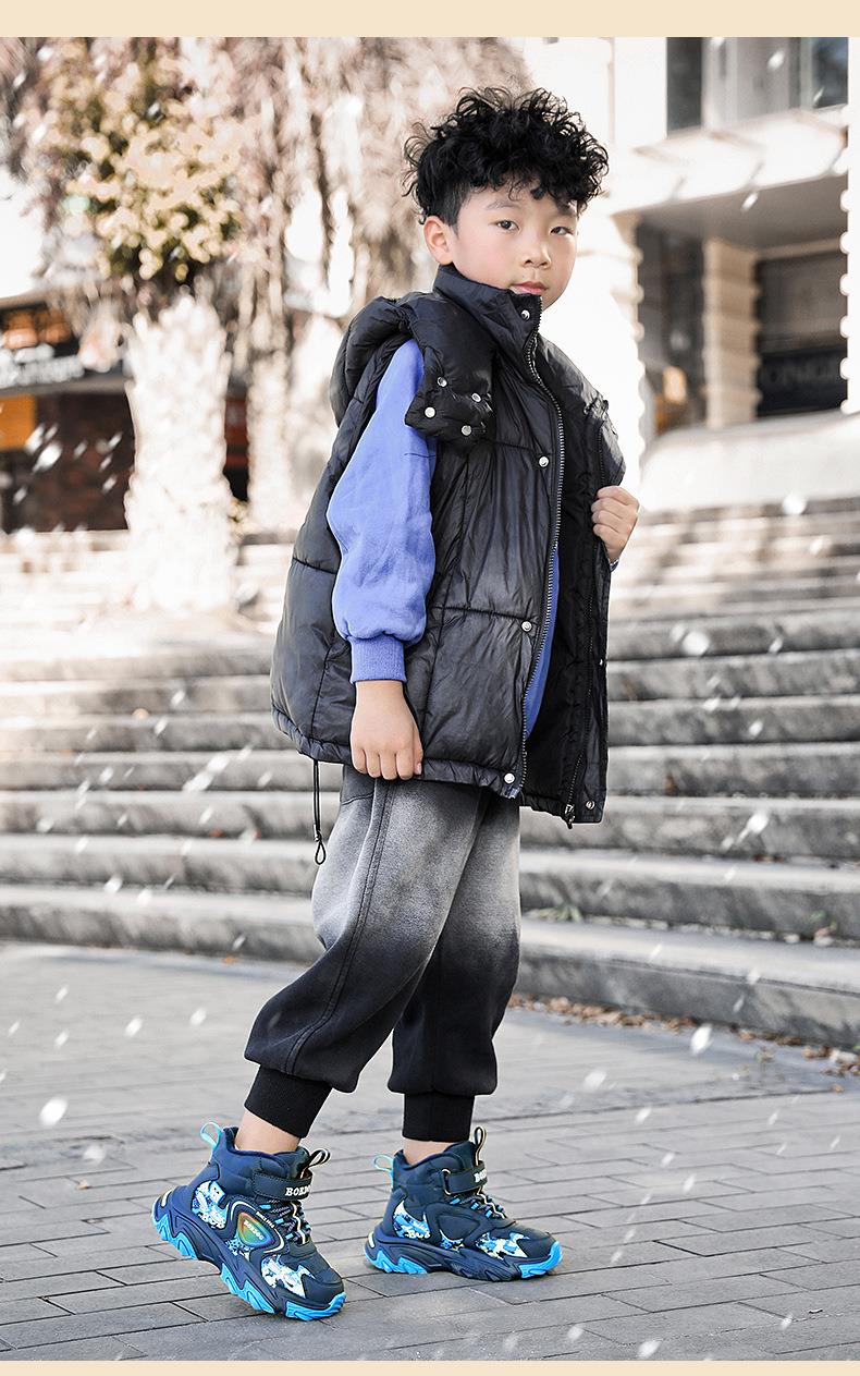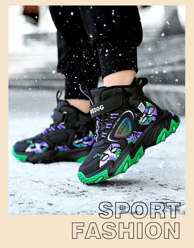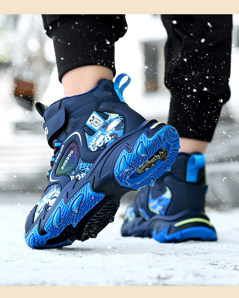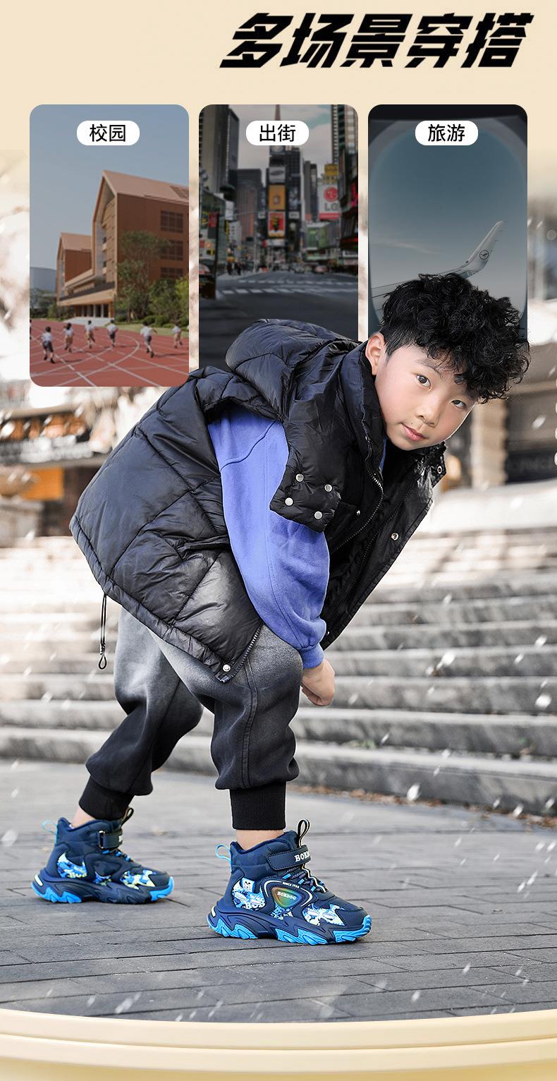 巴布豆儿童雪地靴冬季新款男女童皮面防水防风加绒保暖户外大棉鞋