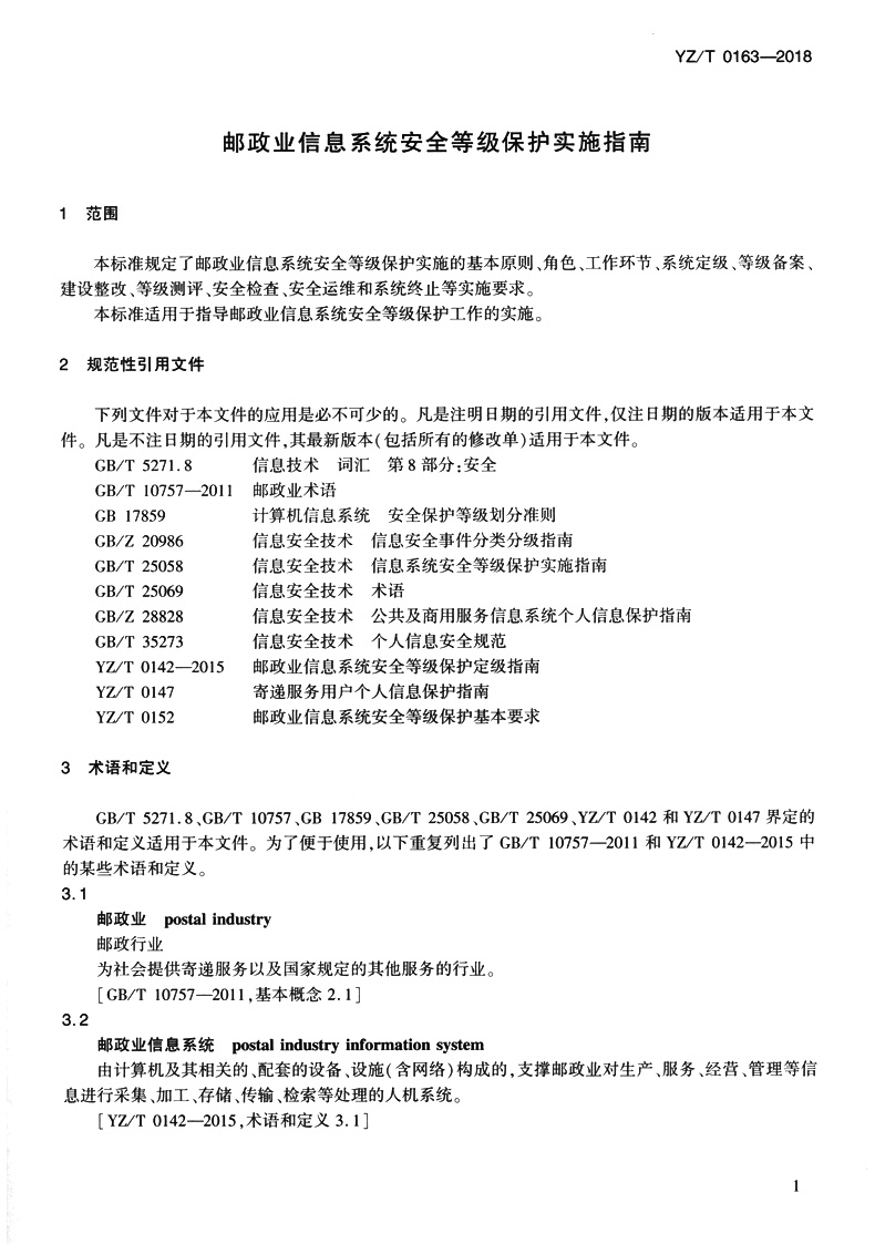 书名:邮政业信息系统安全等级保护实施指南(YZ/T 0163—2018)