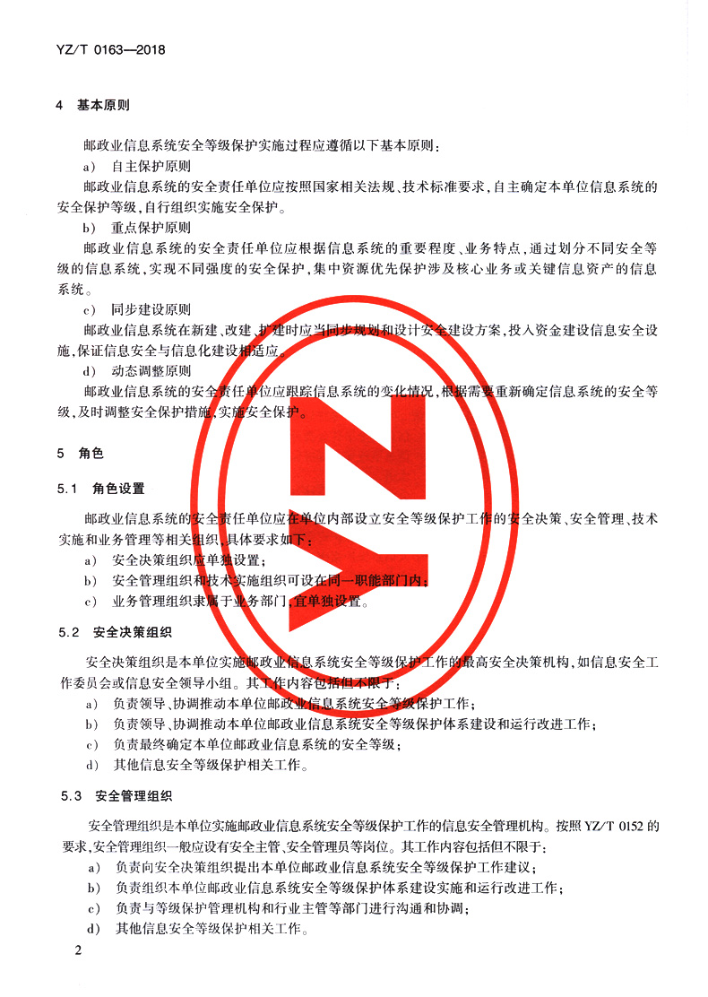 邮政业信息系统安全等级保护实施指南(YZ/T 0163—2018)