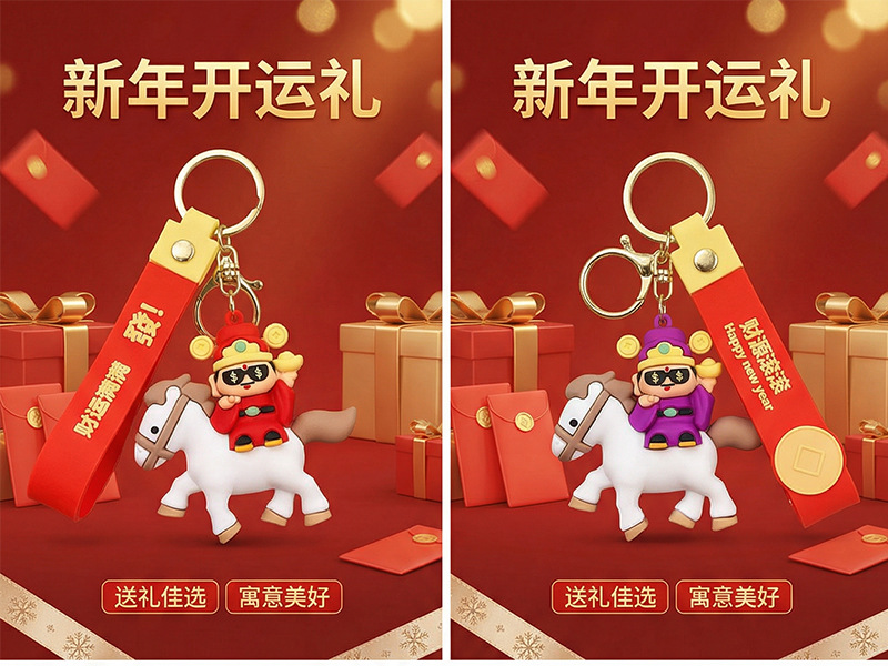 【国潮财运❗一马当先】马年吉祥物钥匙扣小马挂件马上来财神元宝发财挂件新春小礼物礼品。rg