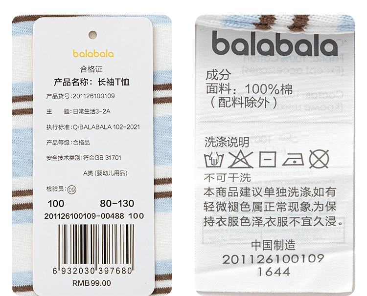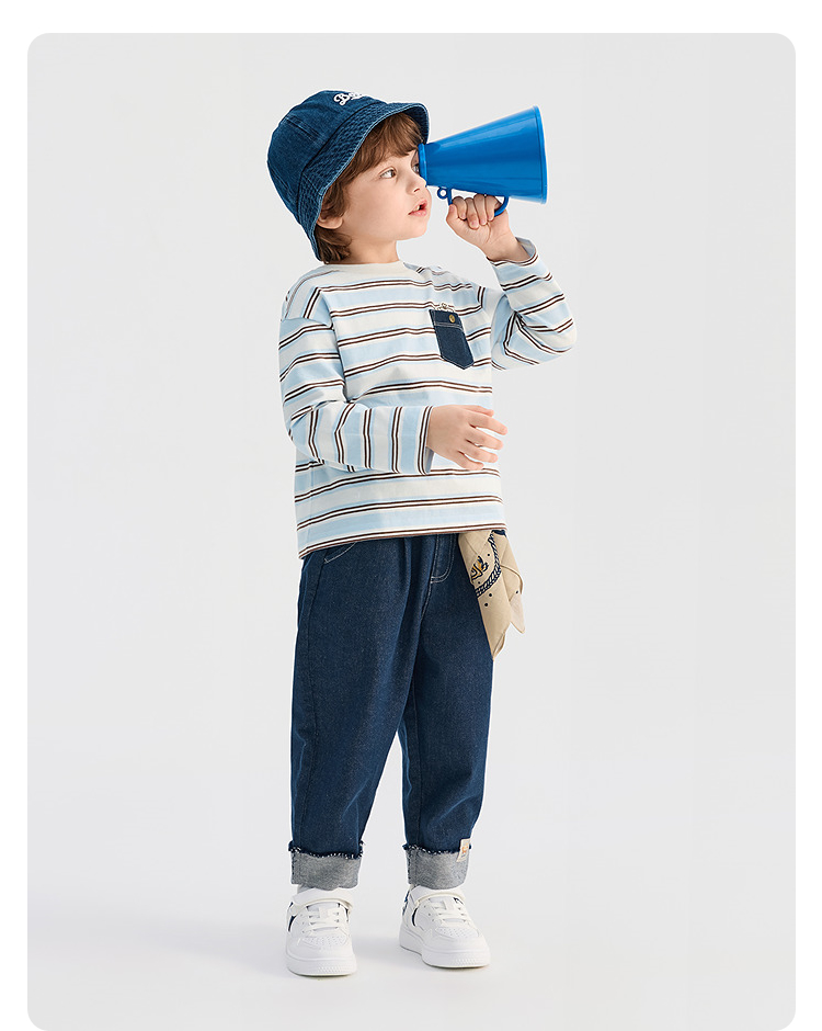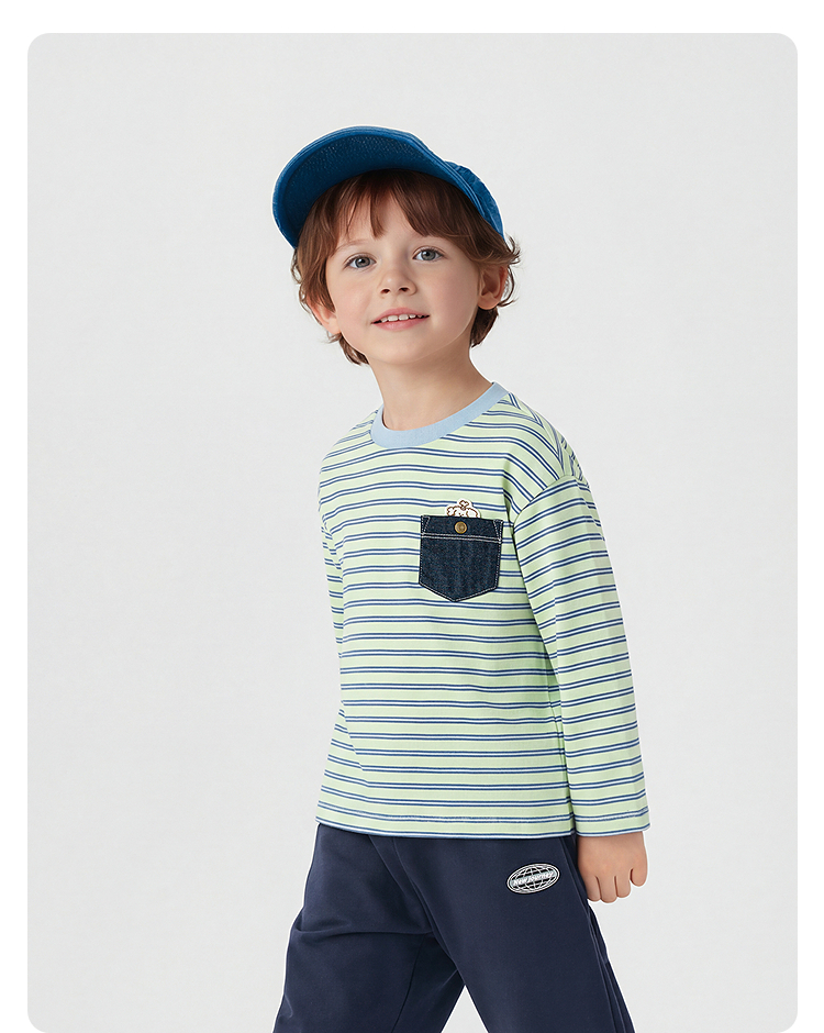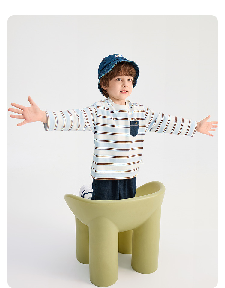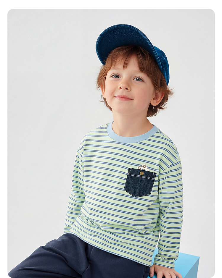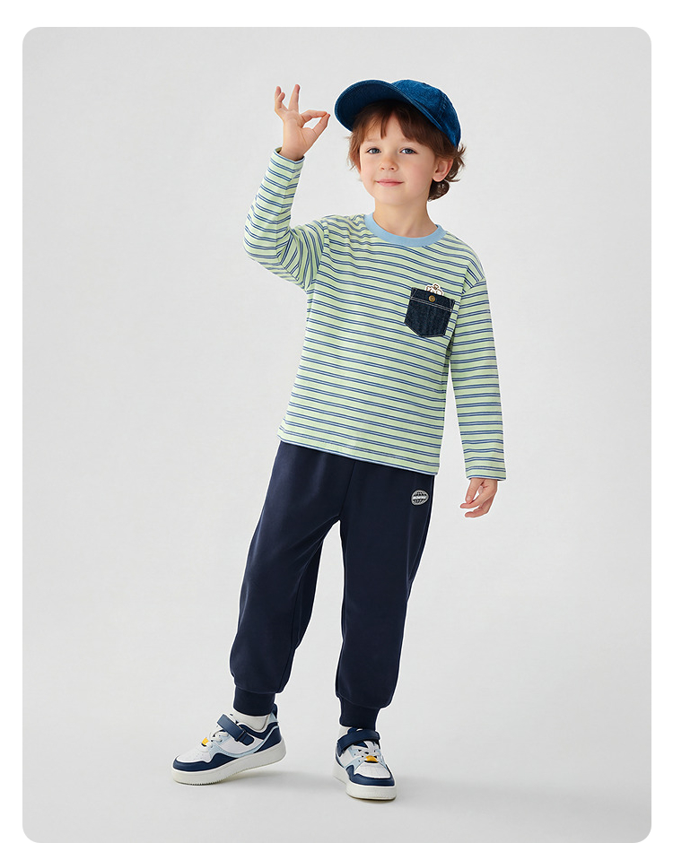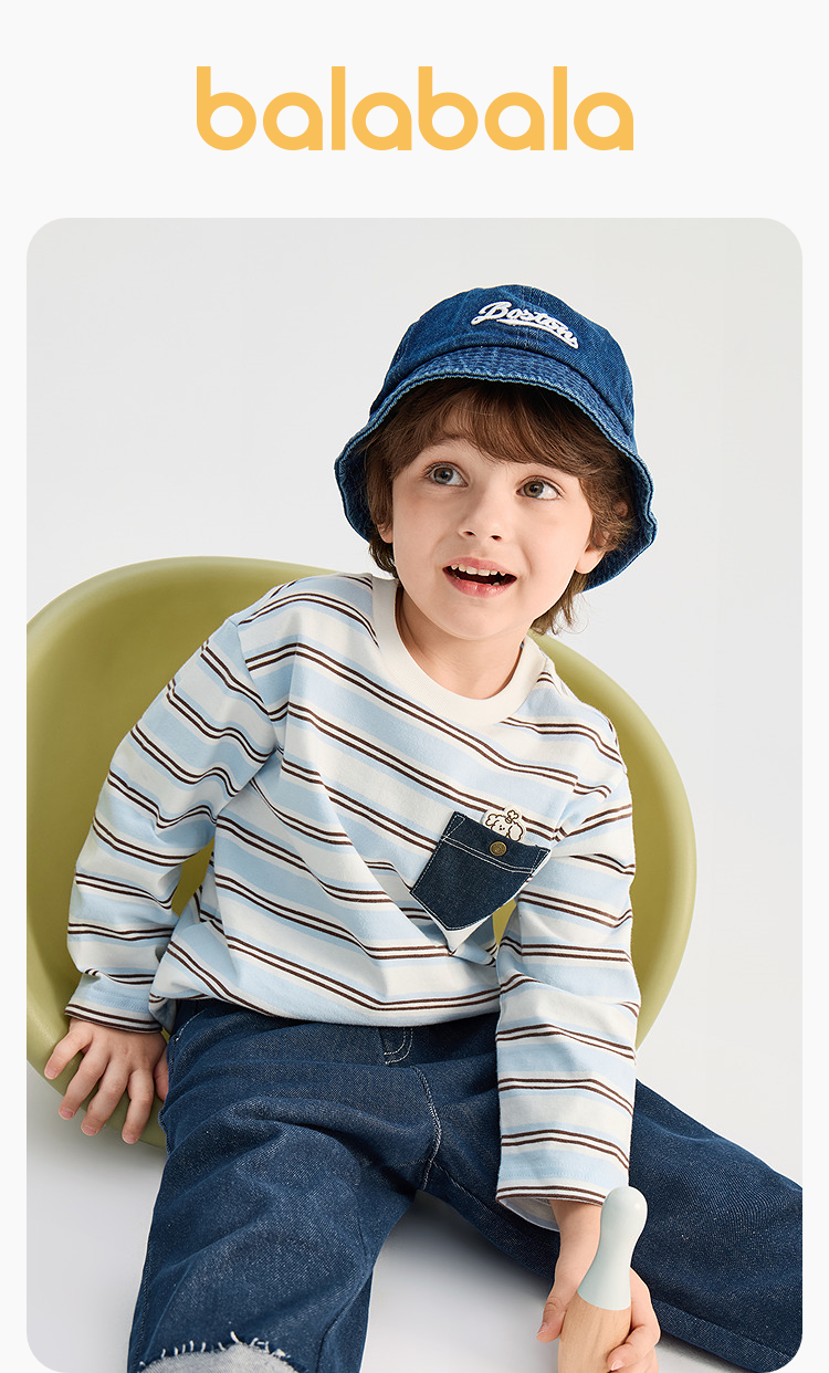 【商场同款】巴拉巴拉儿童长袖t恤男童2026新款春装纯棉条纹上衣