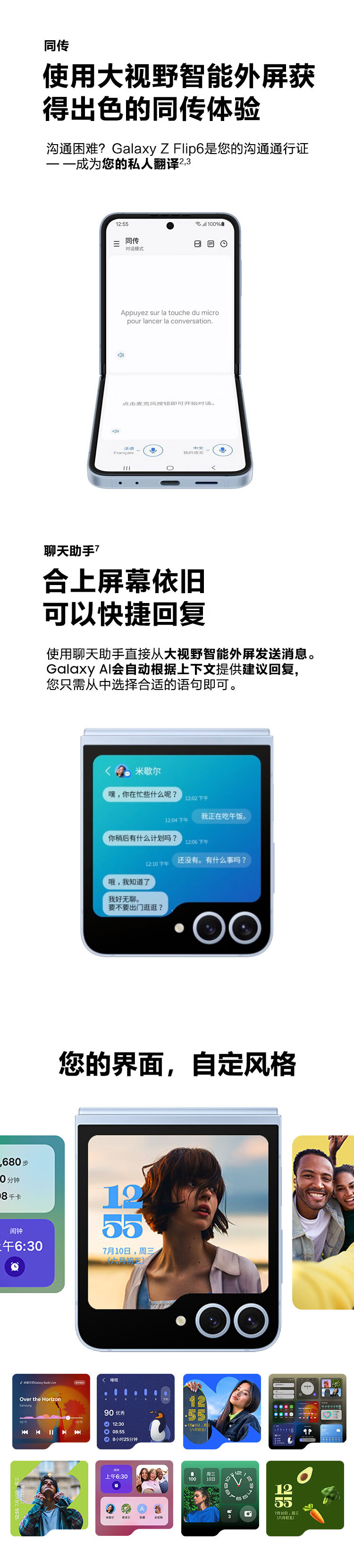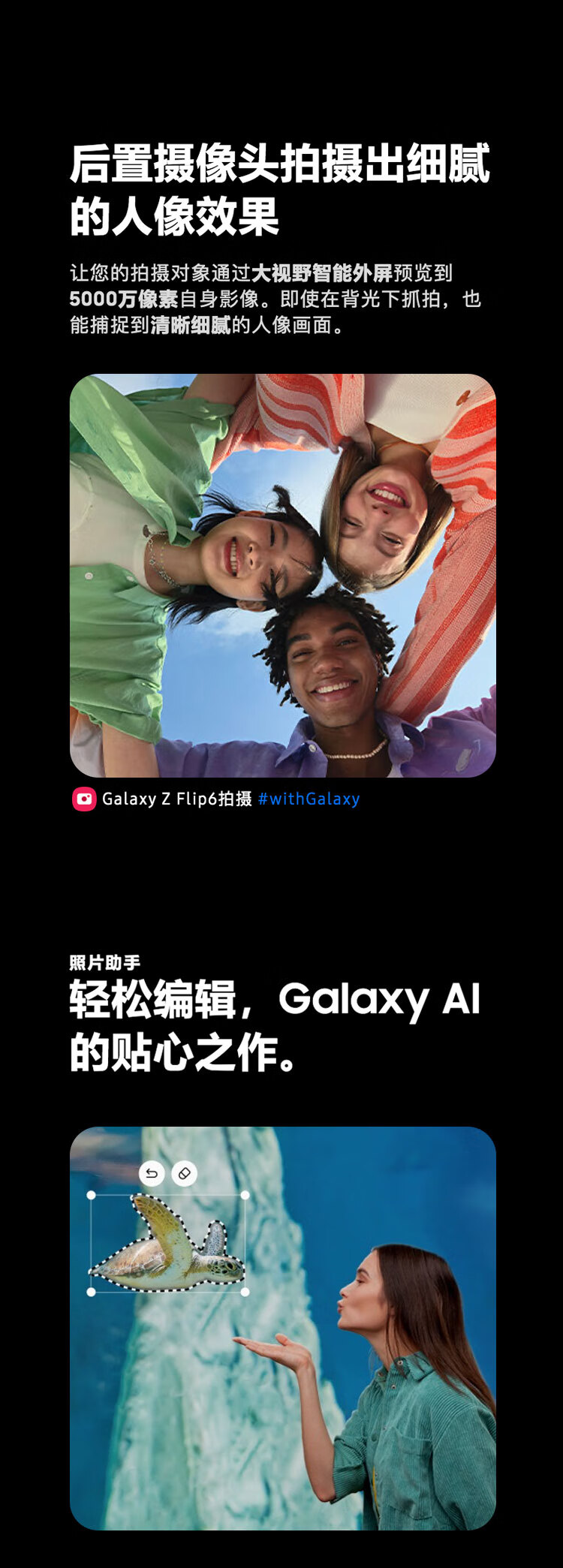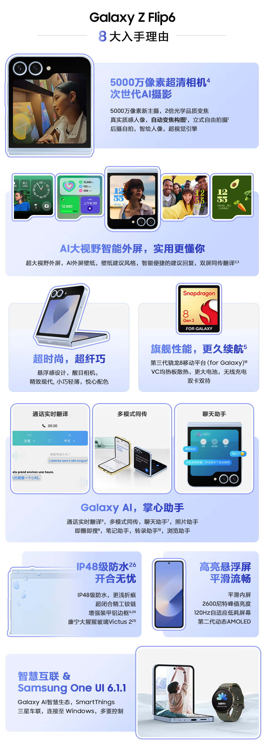 三星(SAMSUNG)Galaxy Z Flip6 AI手机 大视野智能外屏 5000万像素 骁龙8 Gen3 双卡 折叠屏