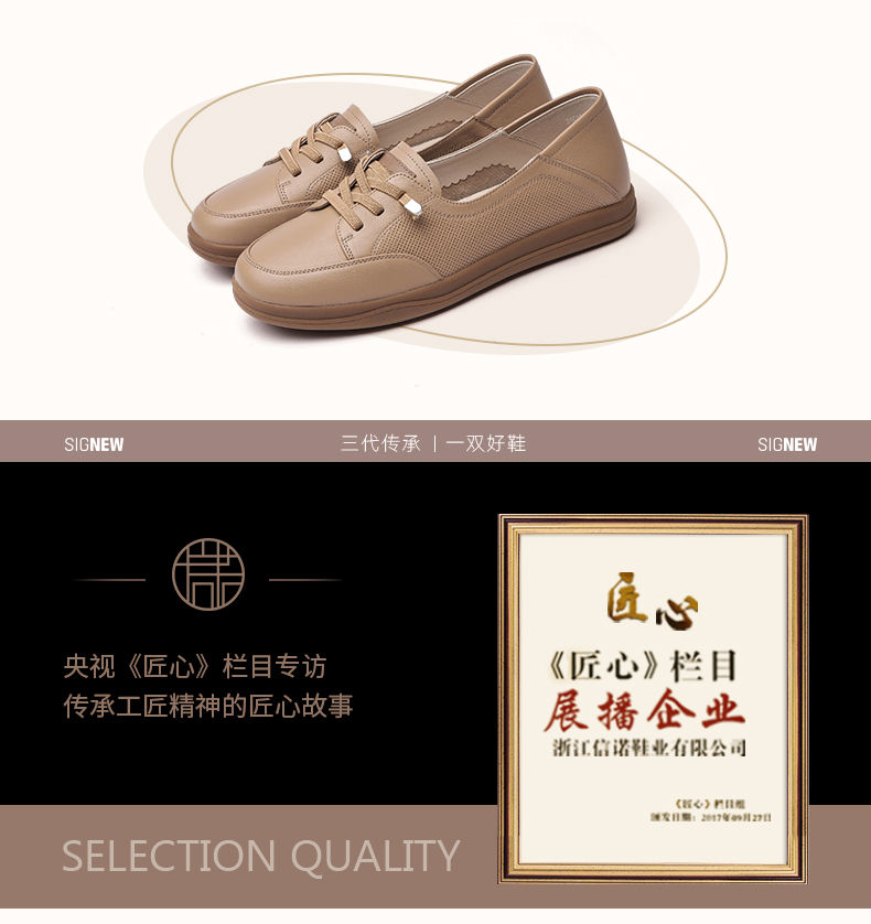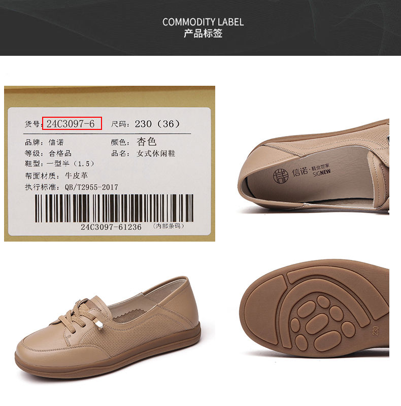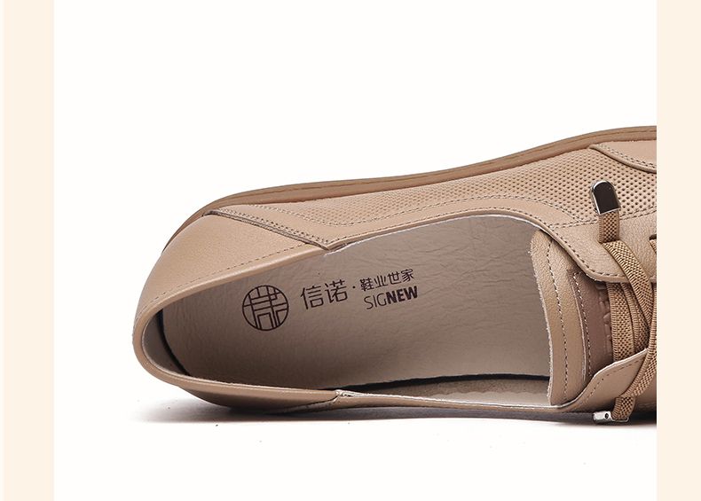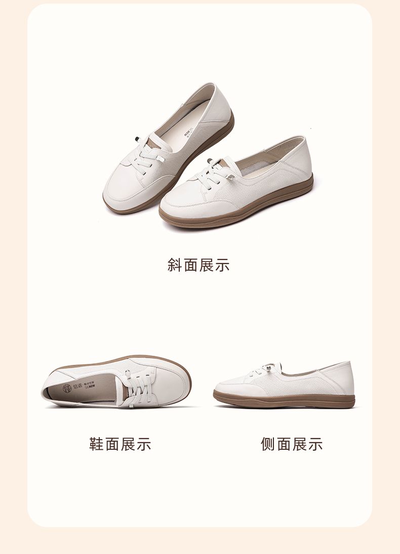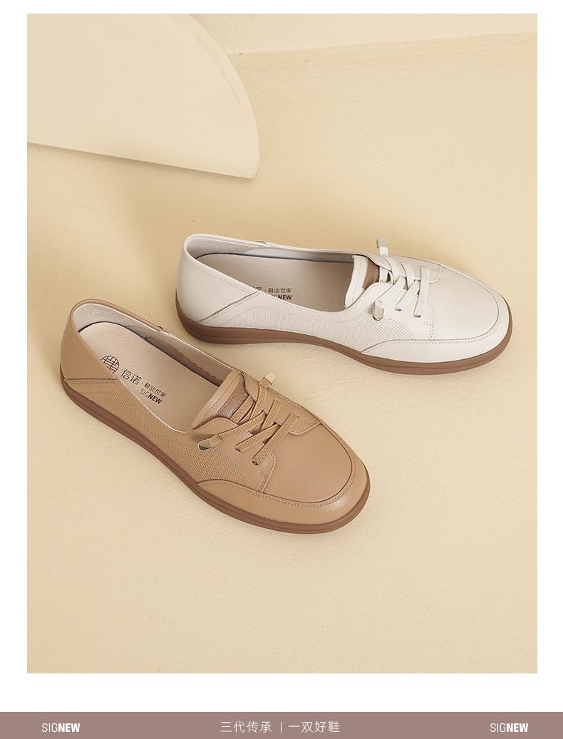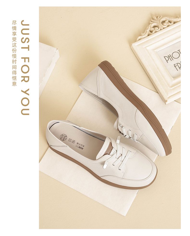 信诺真皮软底小白鞋2024新款春季平底单鞋运动休闲鞋女舒适可可鞋24C3097-6