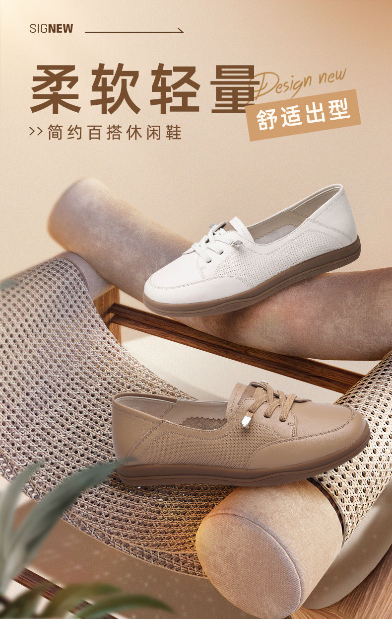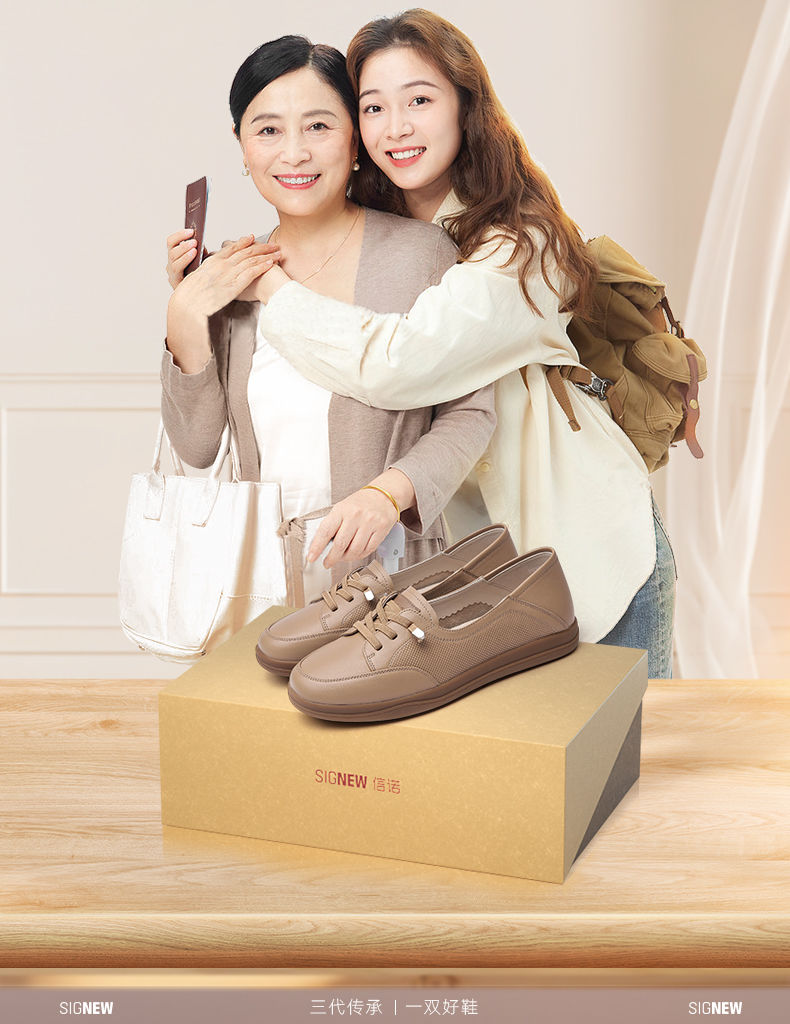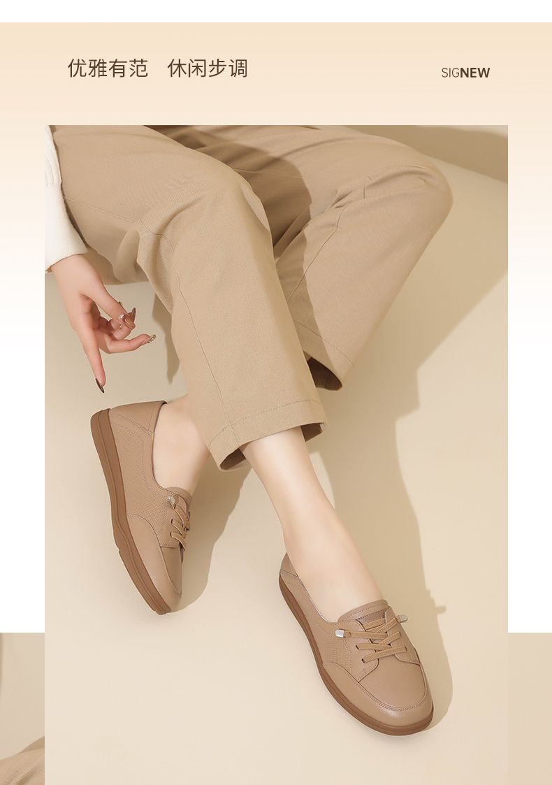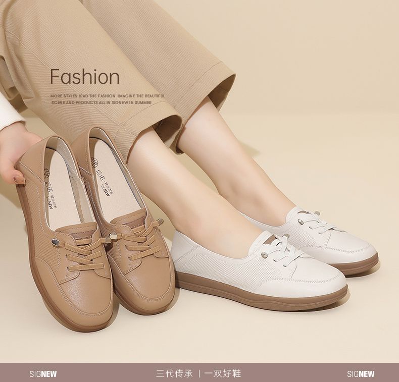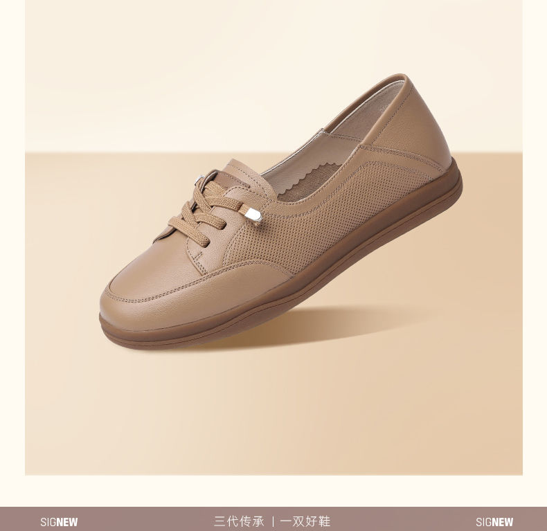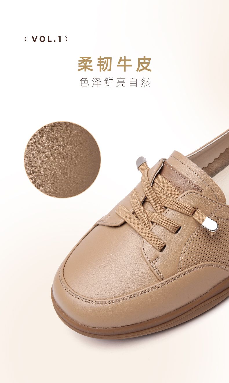 信诺真皮软底小白鞋2024新款春季平底单鞋运动休闲鞋女舒适可可鞋24C3097-6
