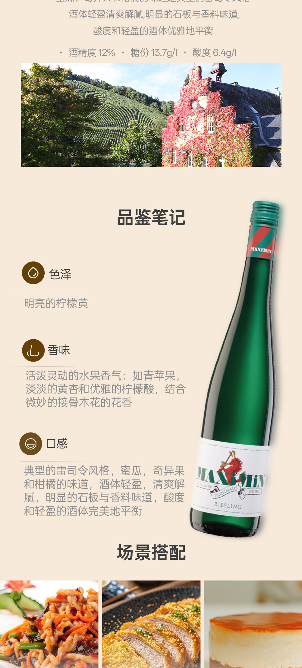漫翠园雷司令白葡萄酒2022 半甜型 12%vol 750ml