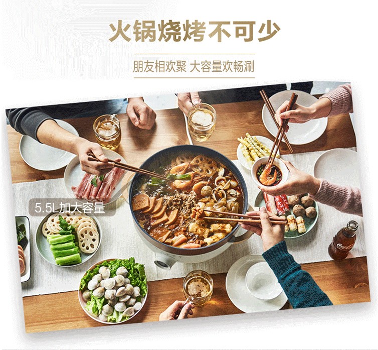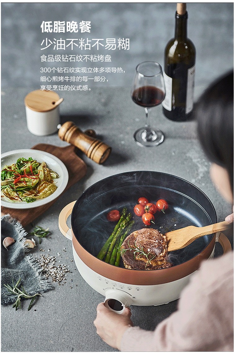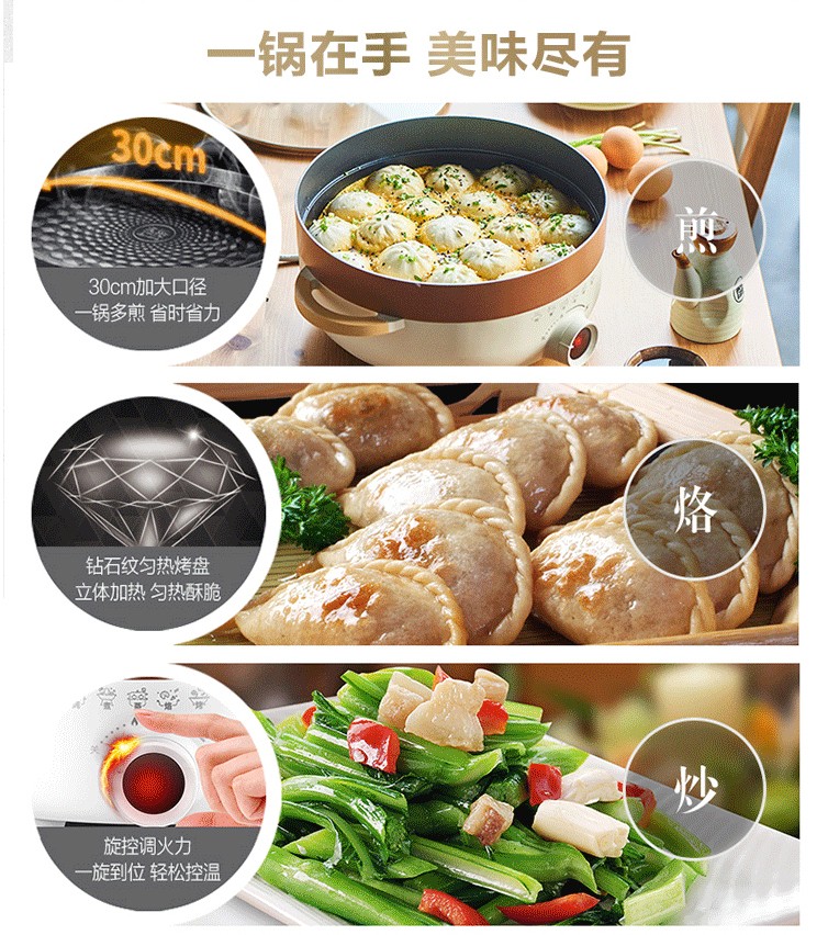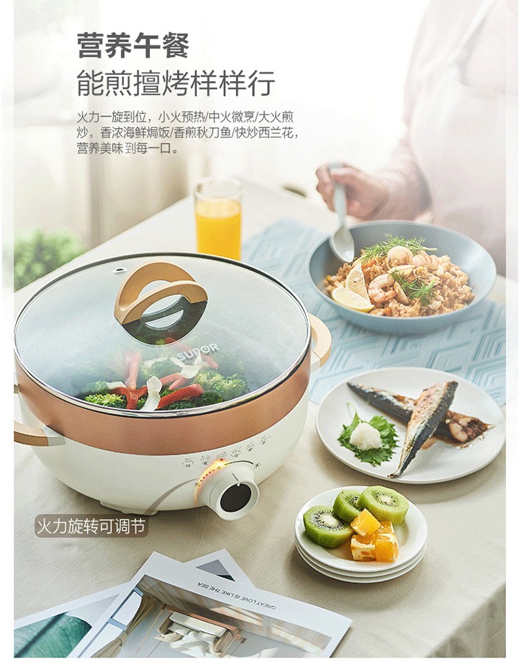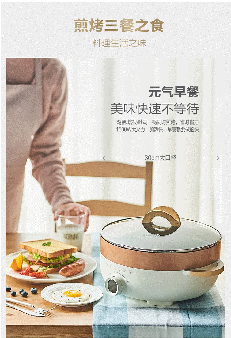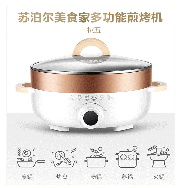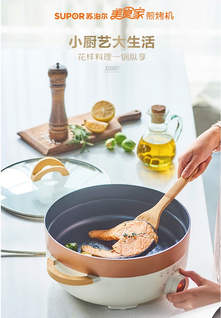 苏泊尔(SUPOR)家用多功能煎烤机烙饼锅煎饼神器电饼档电蒸锅电火锅加大加深JD30D07