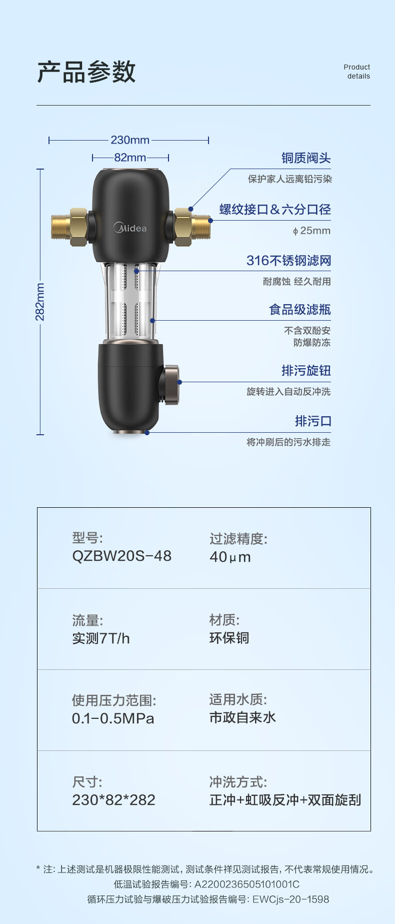 美的(510520)QZBW20S-48 管道式净水机 前置过滤器 黑色 非智能 美的