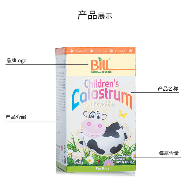 Bill儿童牛初乳 咀嚼片90粒 #石家庄仓