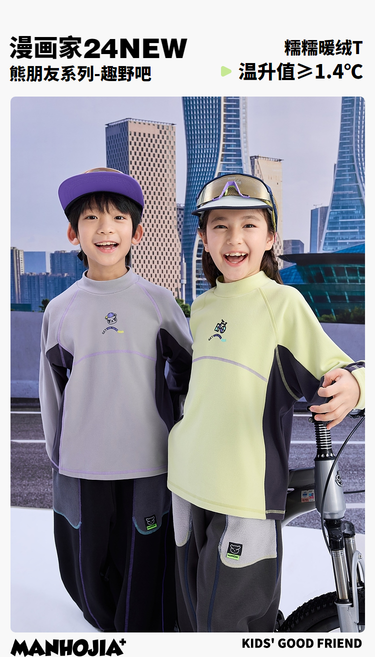 漫画家潮童装24秋冬新款上学骑行远红外升温暖绒打底外穿男童T恤