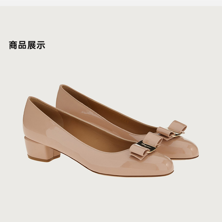 FERRAGAMO 菲拉格慕 女士皮革 VARA 蝴蝶结高跟鞋 裸色 753641