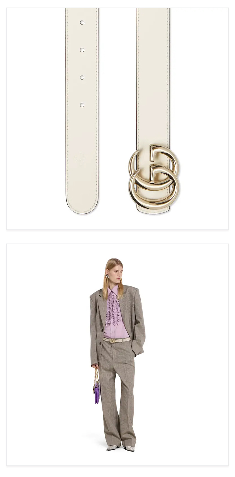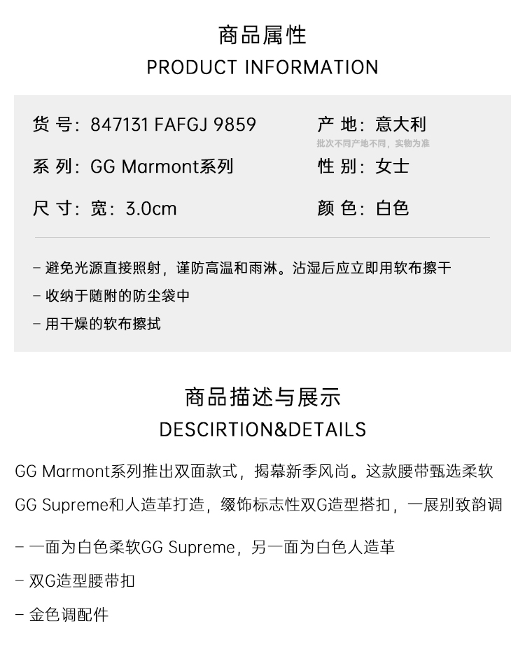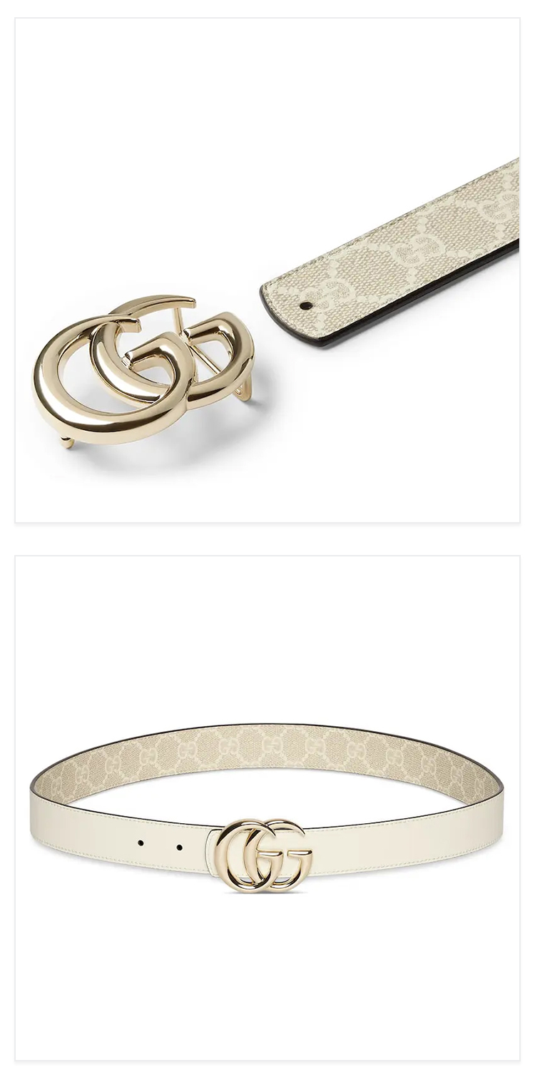 GUCCI 古驰 女士 GG Marmont系列 双面腰带 白色 847131 FAFGJ 9859