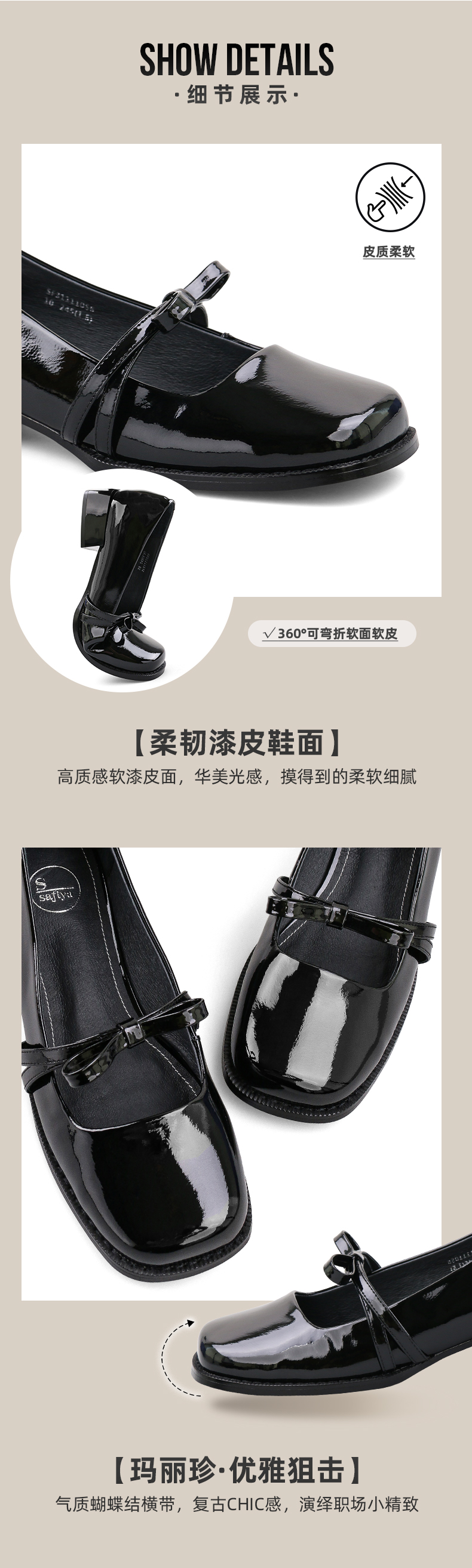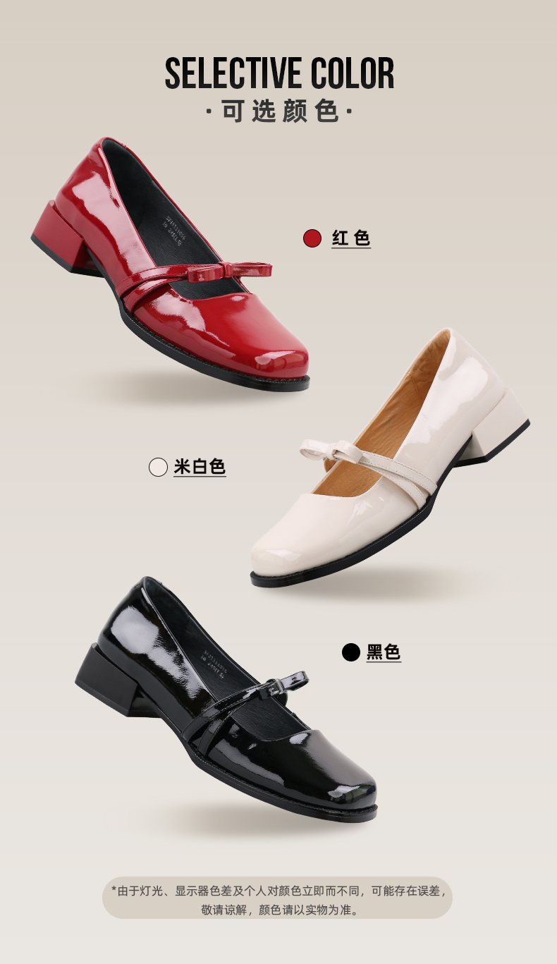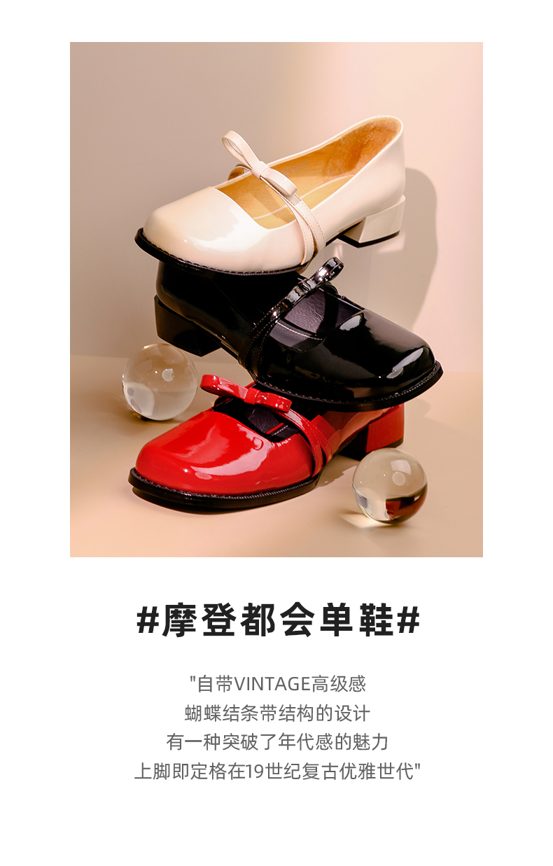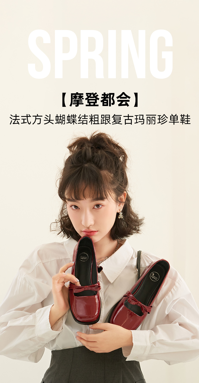 Safiya/索菲娅 法式方头2023年春季新款蝴蝶结粗跟复古玛丽珍单鞋 SF31111056