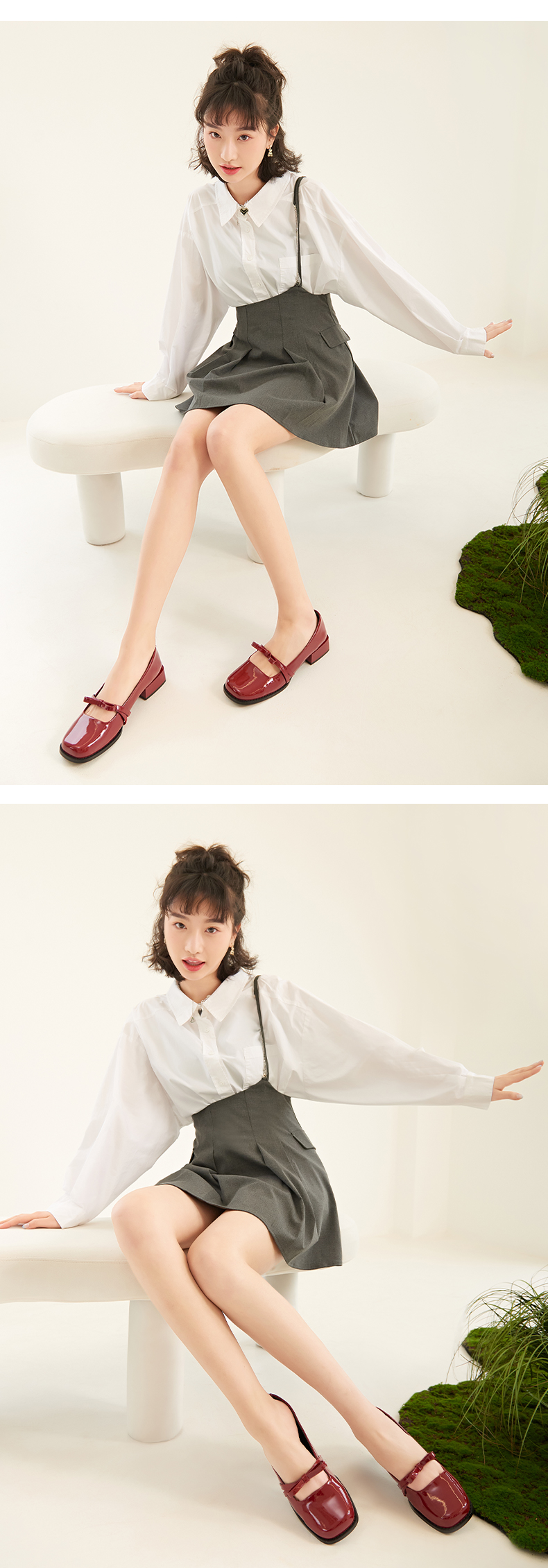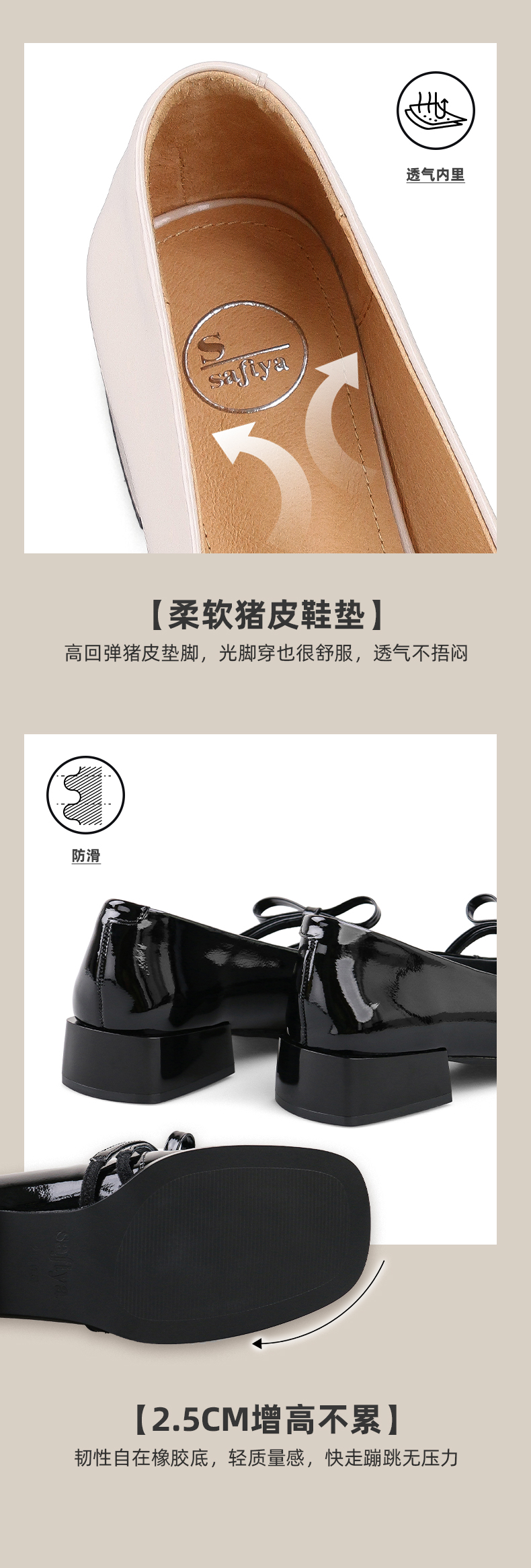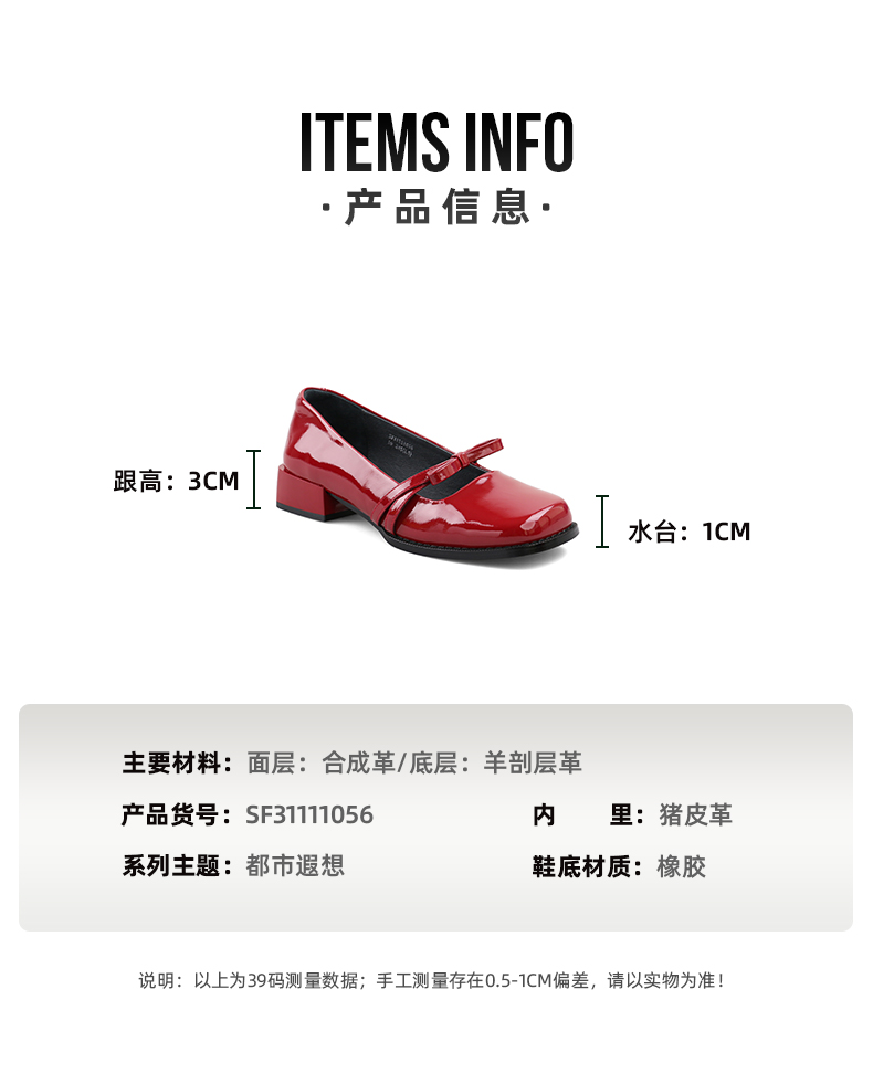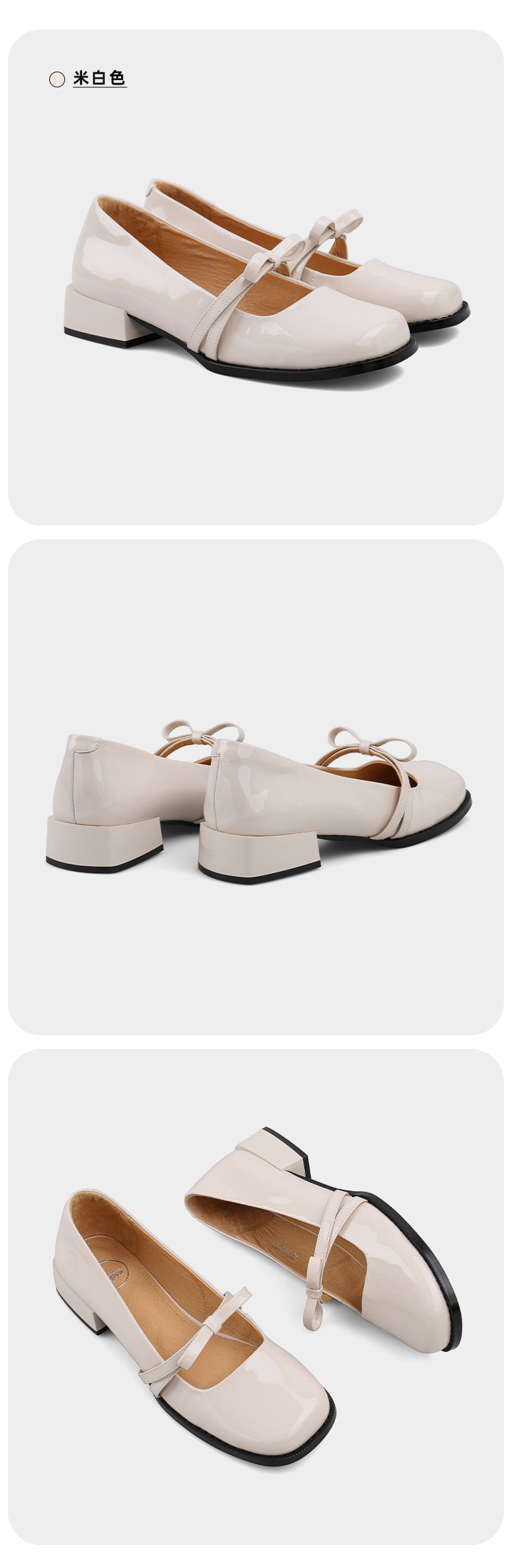 Safiya/索菲娅 法式方头2023年春季新款蝴蝶结粗跟复古玛丽珍单鞋 SF31111056