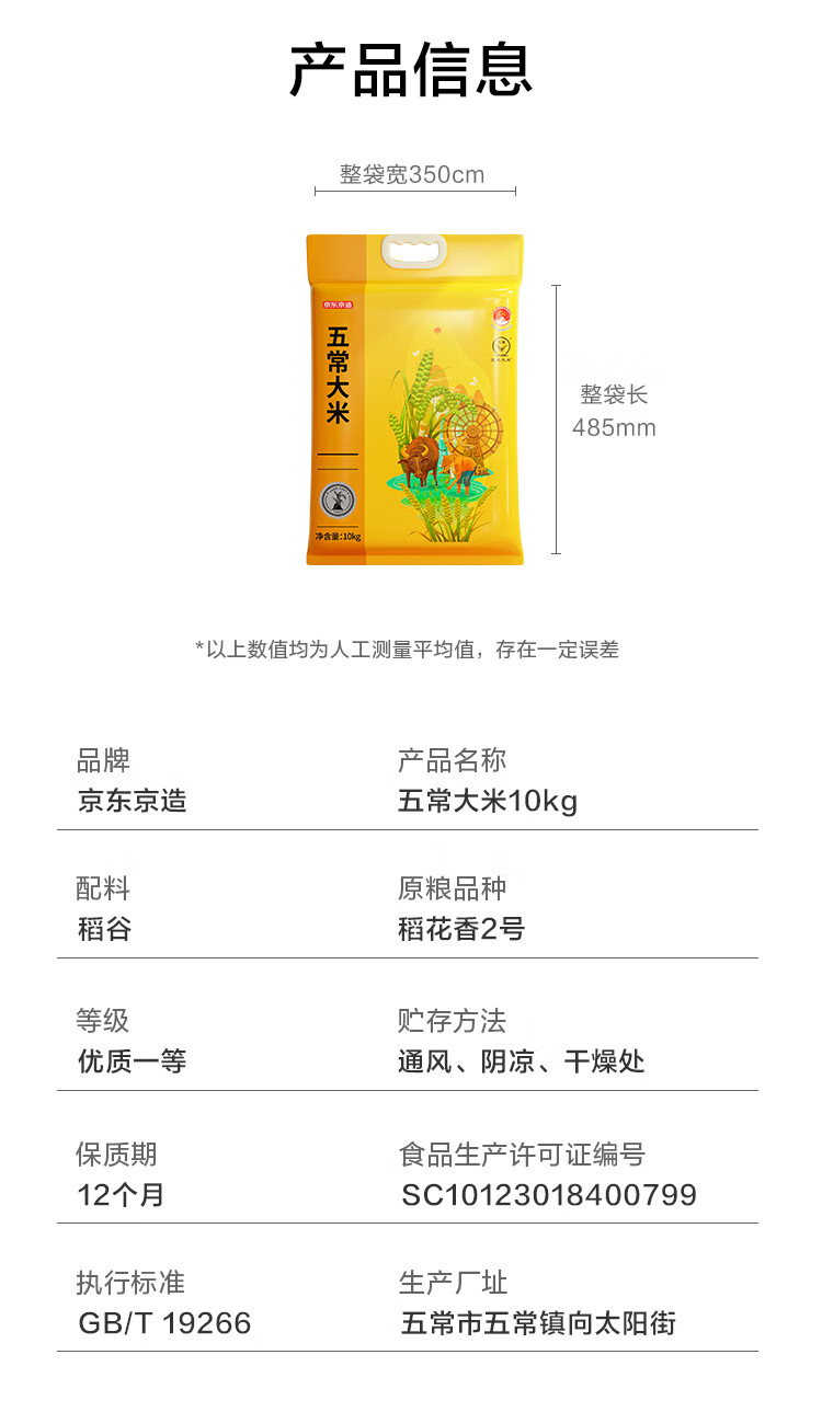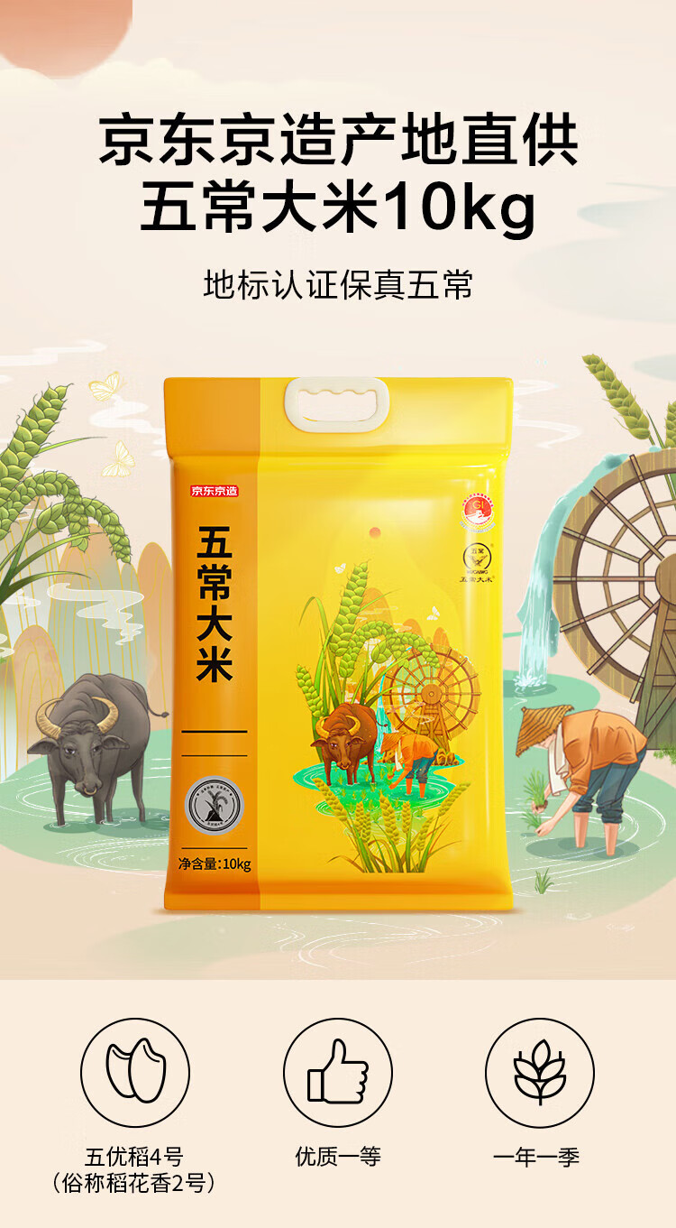 京东京造 五常大米10kg 五常稻花香 2022新米上市 东北大米 二十斤