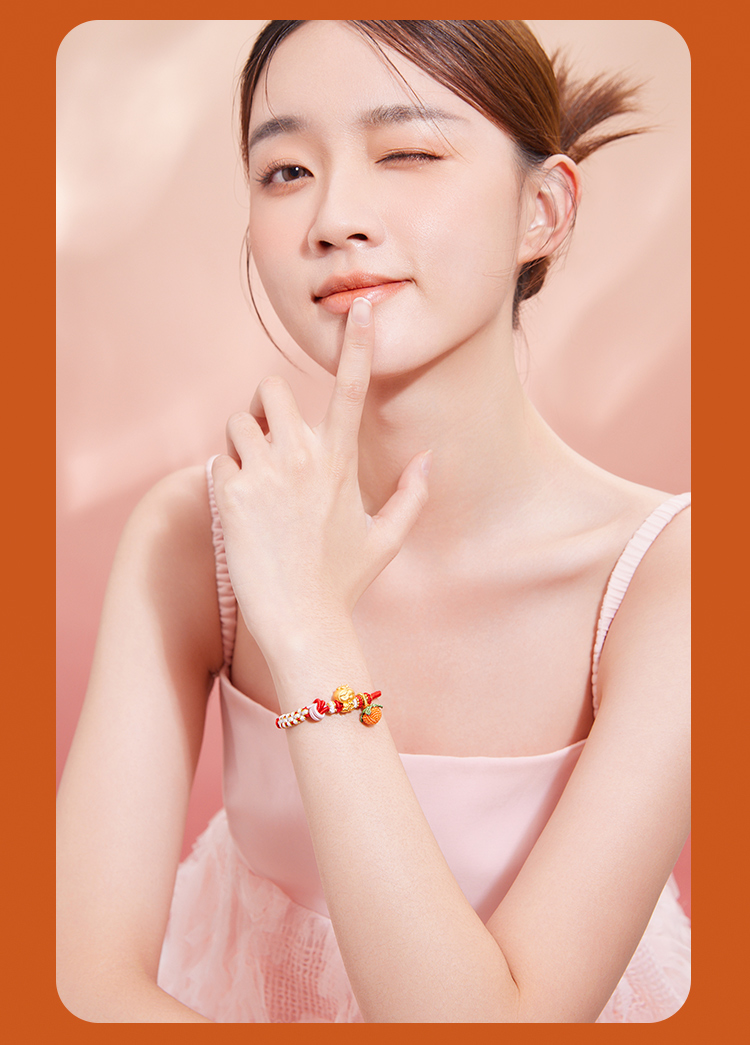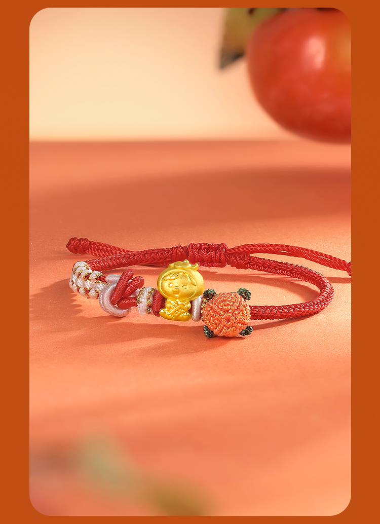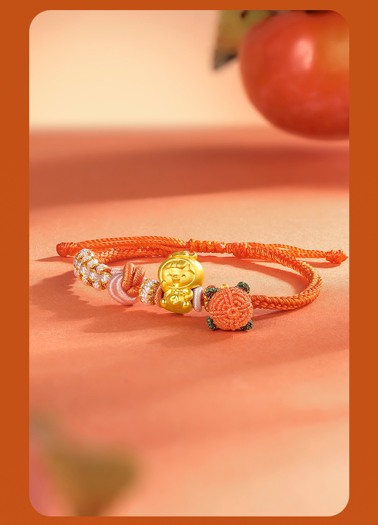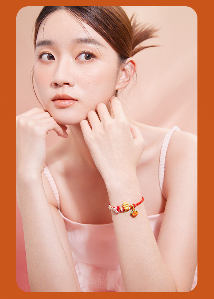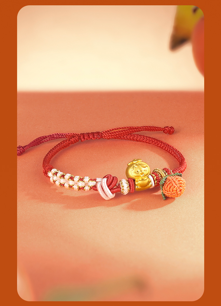 周六福黄金手链足金定价好柿宝宝转运珠编织红手绳手饰旗舰店官网