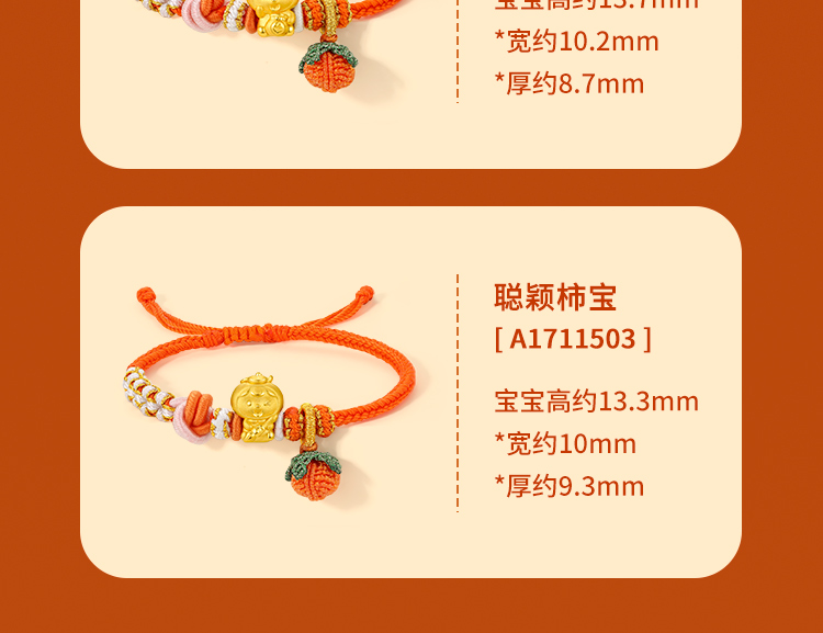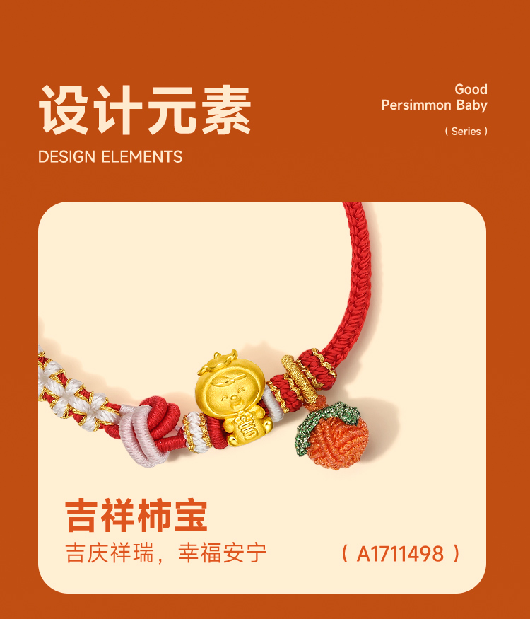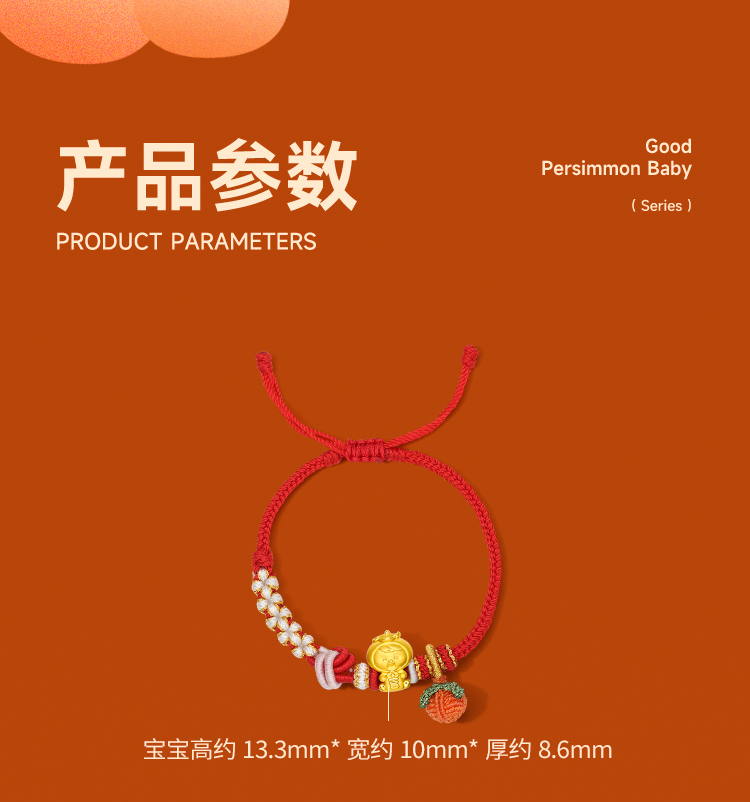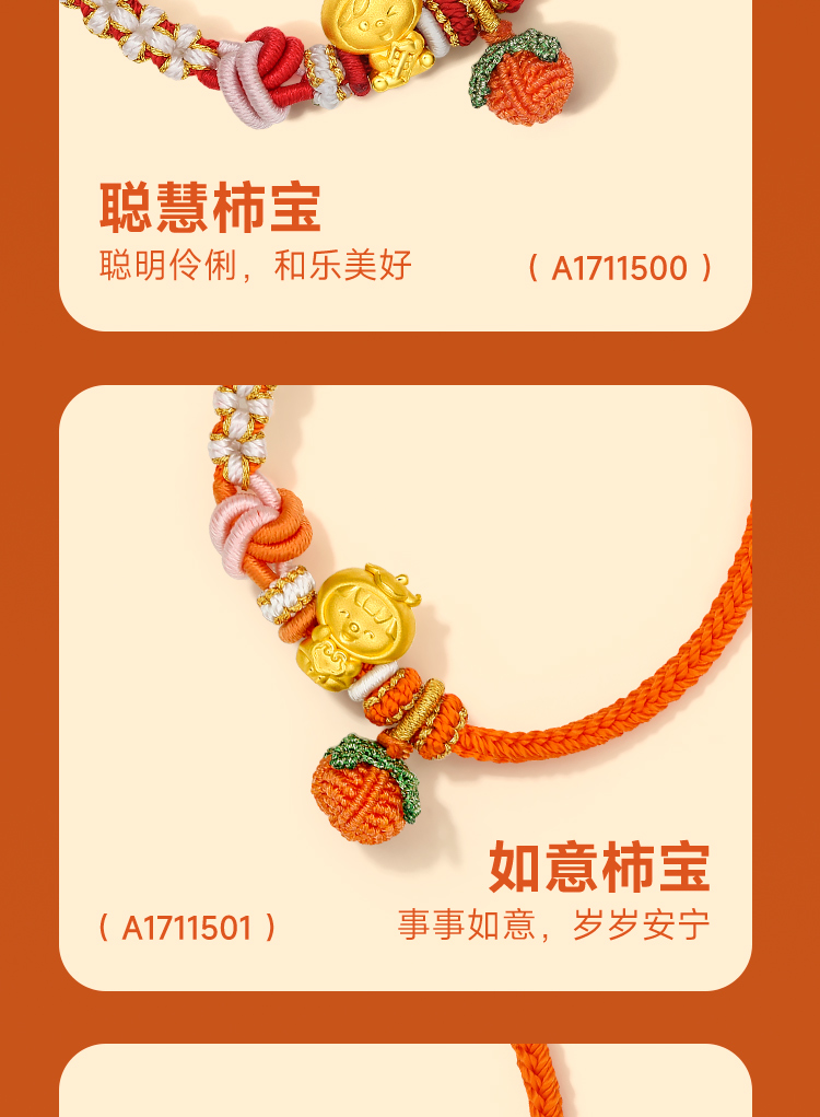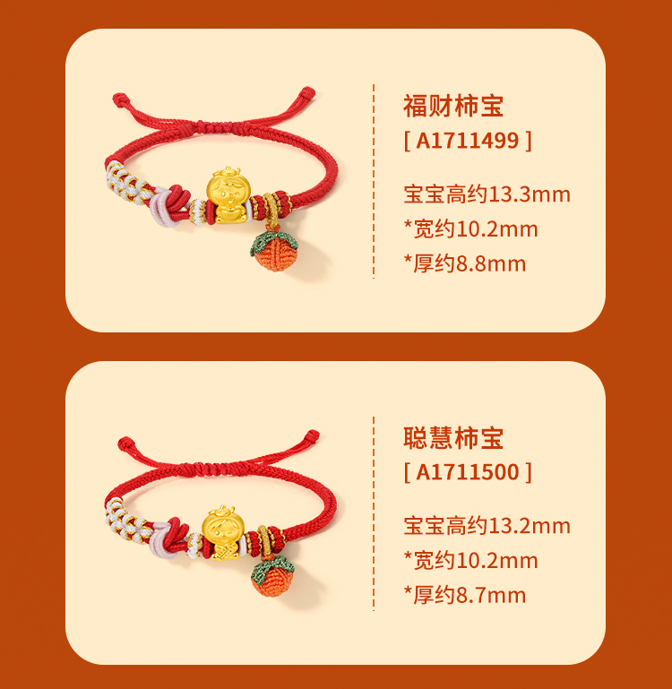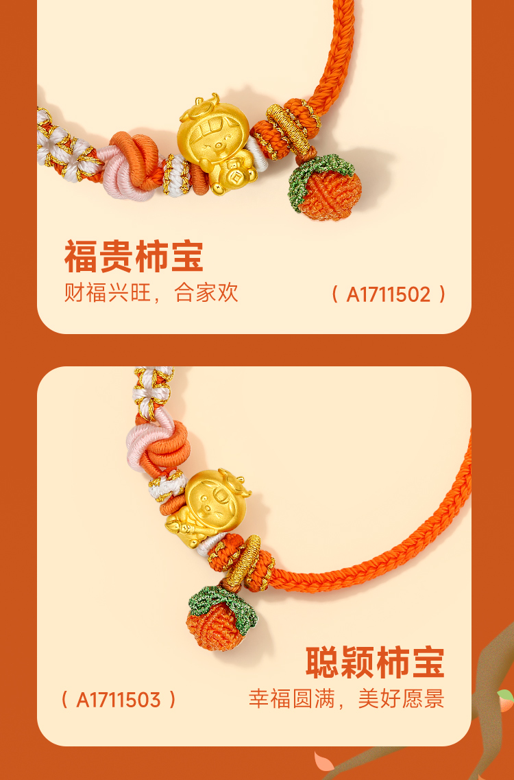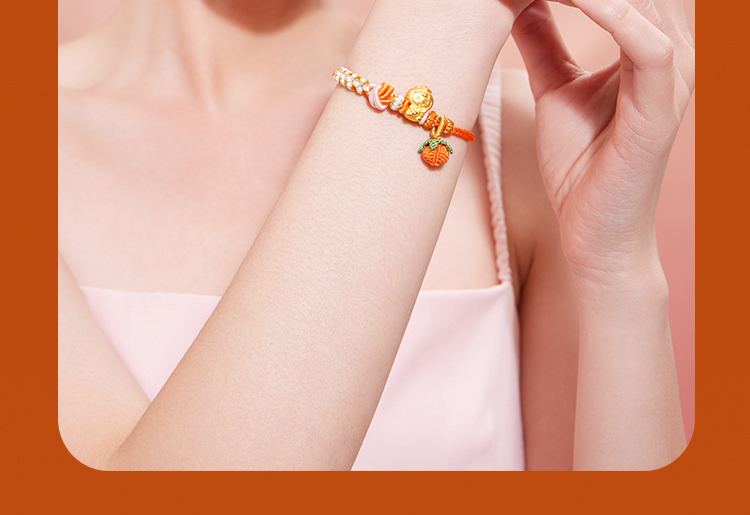 周六福黄金手链足金定价好柿宝宝转运珠编织红手绳手饰旗舰店官网