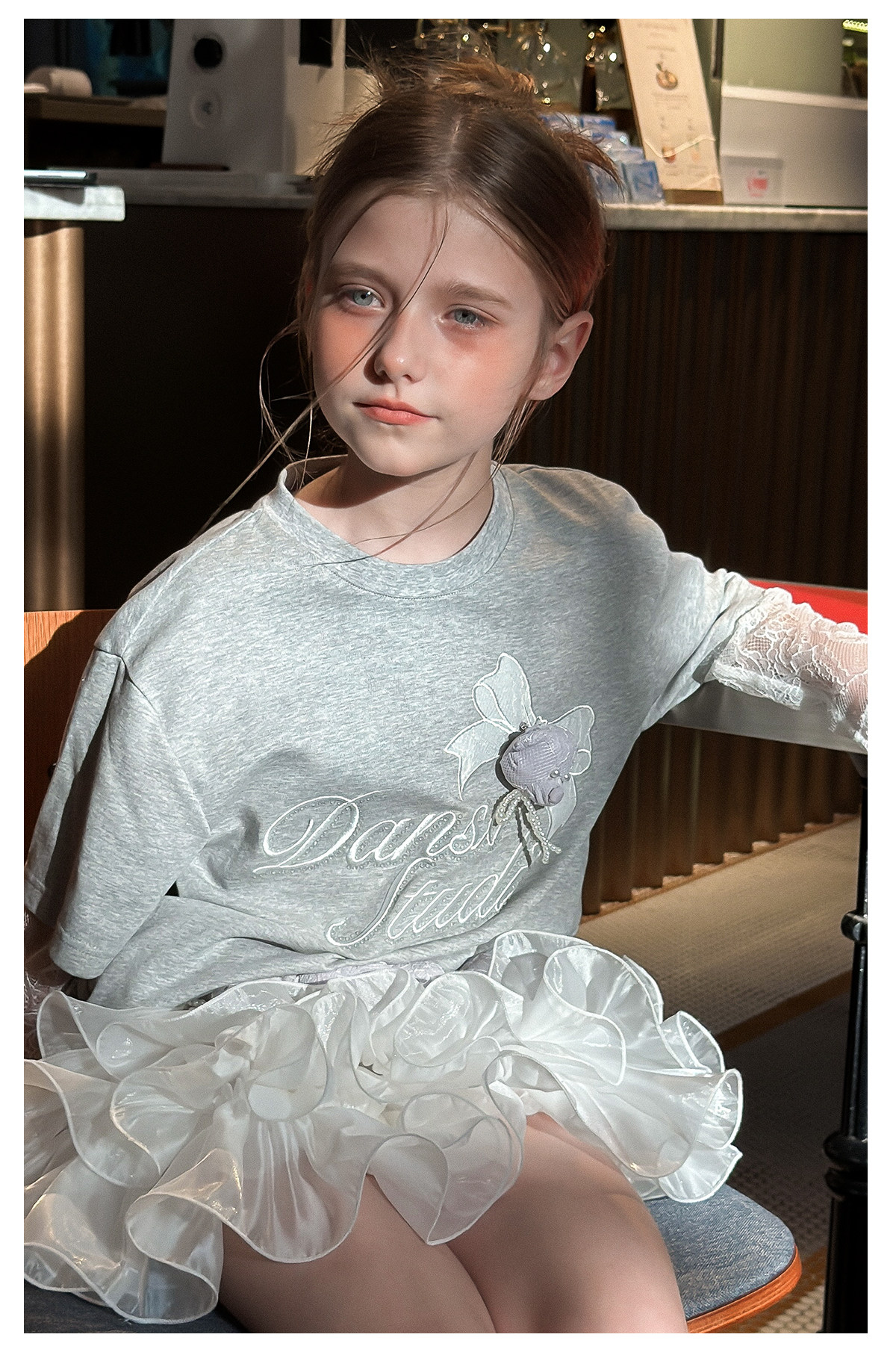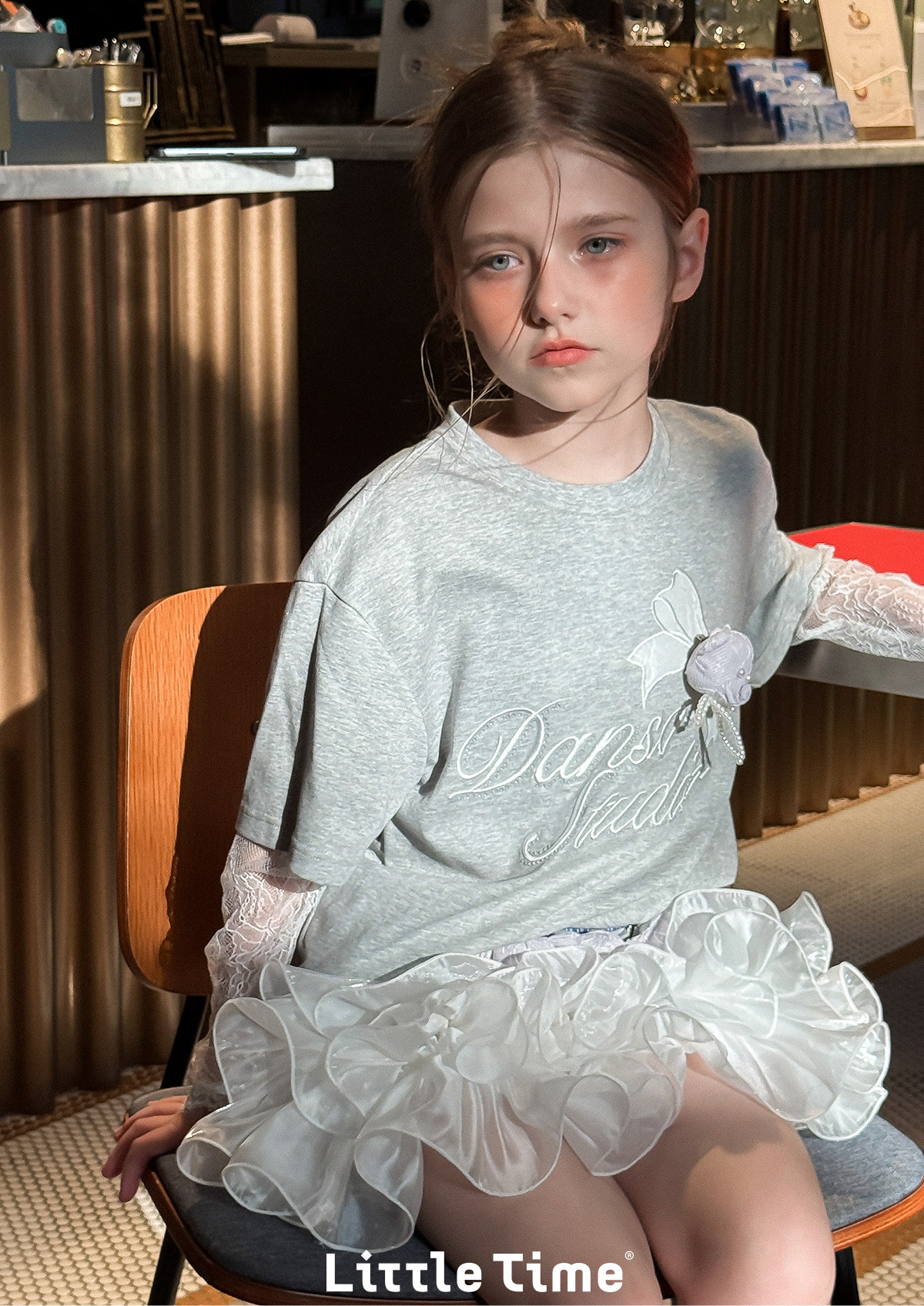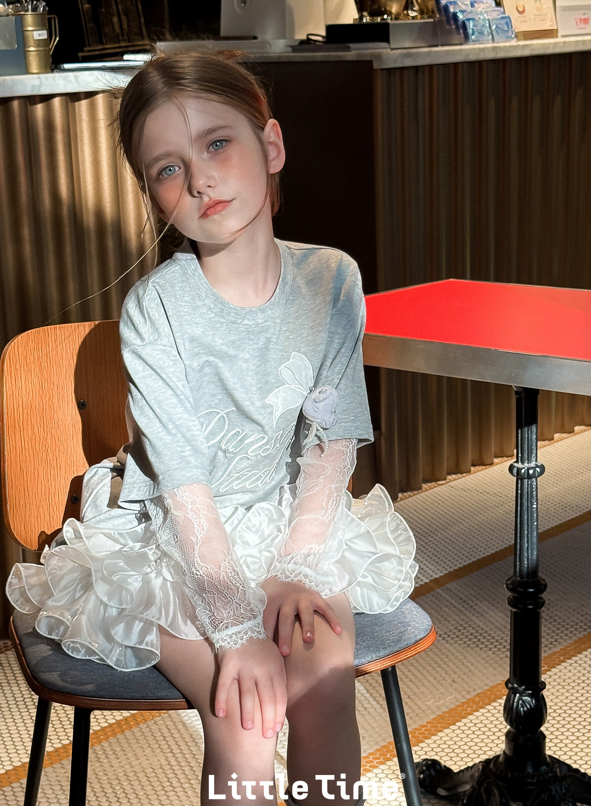 littletime法式甜美风白色蕾丝绣花罩衫女夏长袖显瘦蛋糕T恤