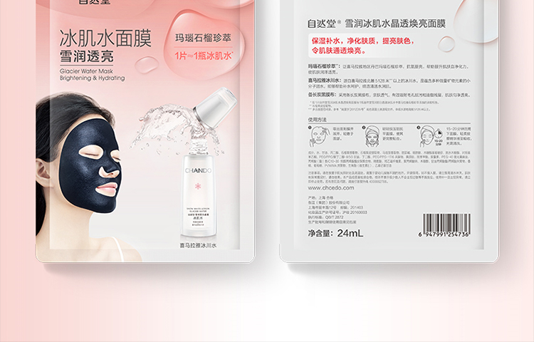 自然堂雪润冰肌水晶透焕亮面膜24mL*5PCS