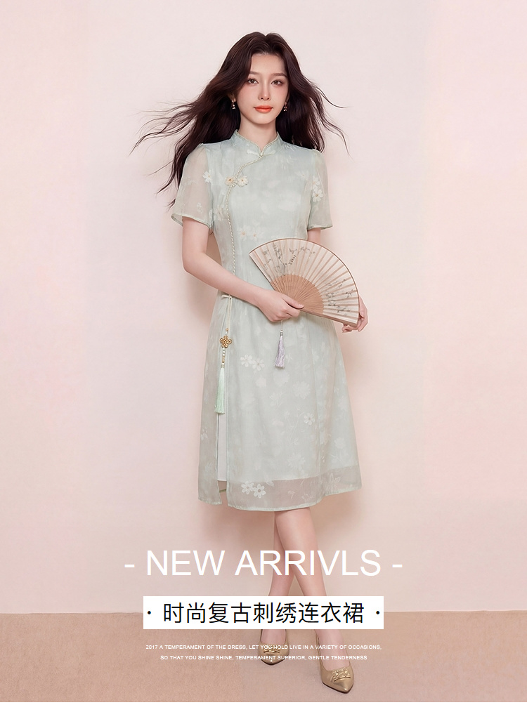 奢姿大码女装2026夏季胖妹妹时尚国风刺绣连衣裙气质复古显瘦长裙9962894514