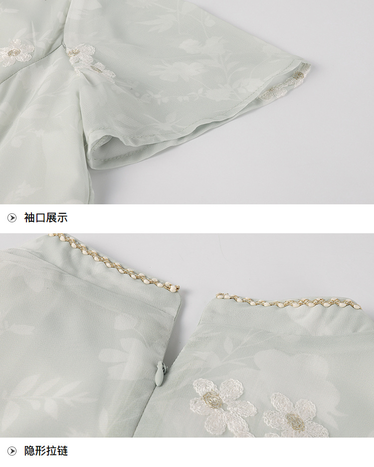 奢姿大码女装2026夏季减龄绣花V领两件套胖妹妹花边甜美时尚套装9962972006