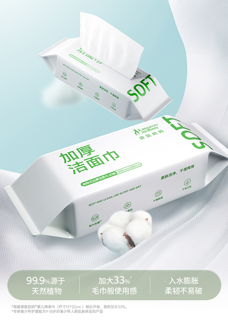 【绵柔巾60抽】加厚加大设计 轻柔舒适 擦拭不泛红 双面设计轻松清洁