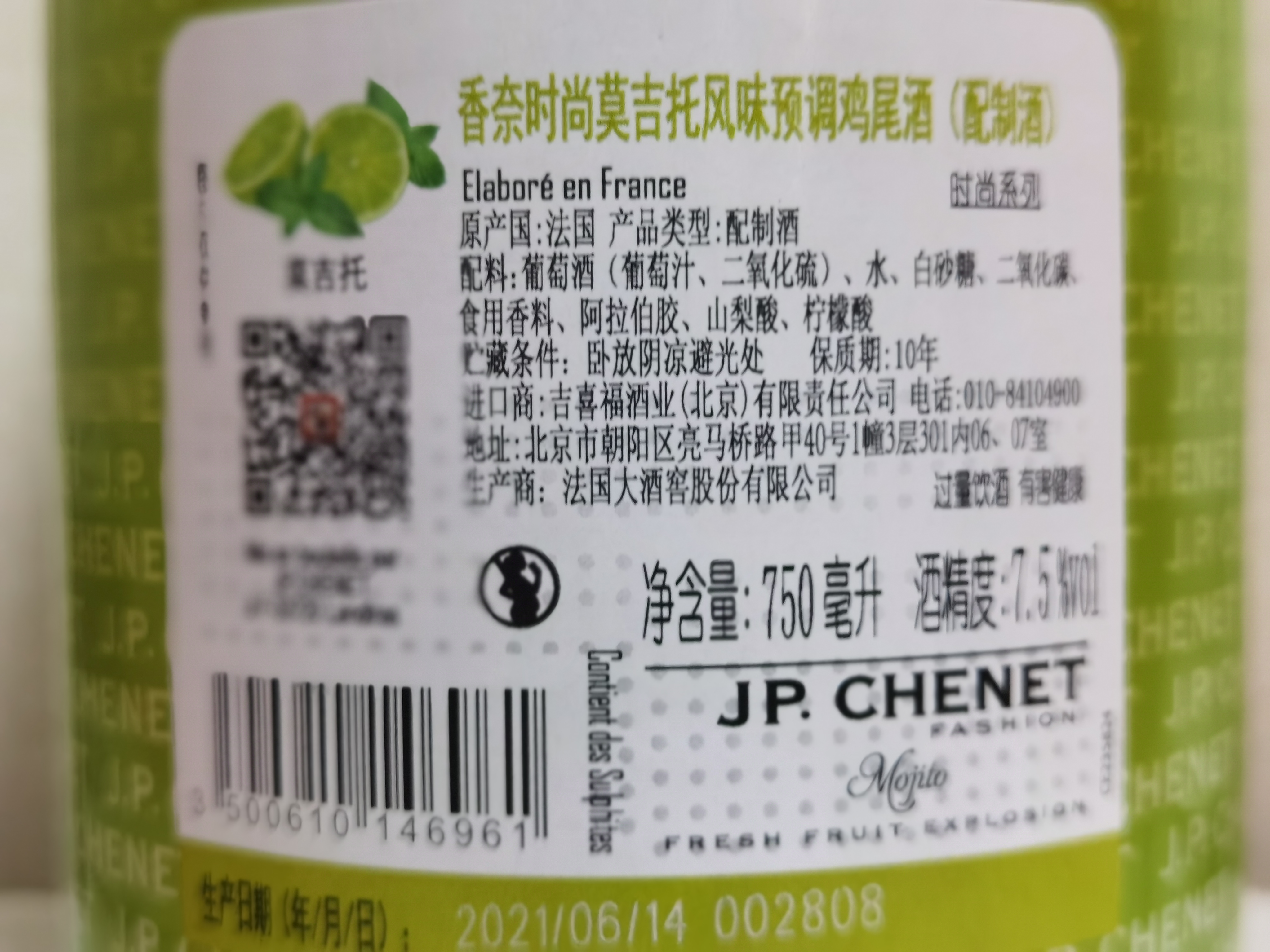 JP.CHENET香奈时尚系列 莫吉托mojito起泡酒 法国原瓶进口葡萄酒 750ml 节日礼赠 亲朋聚会 72小时发货