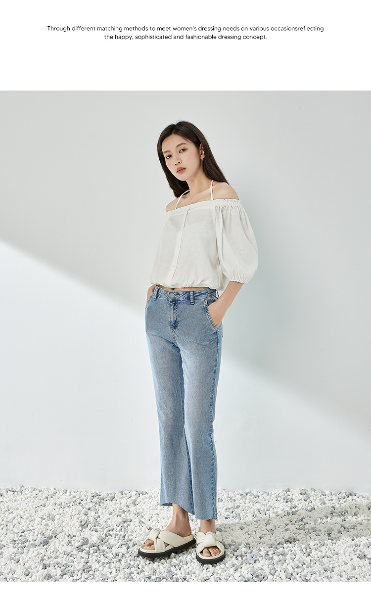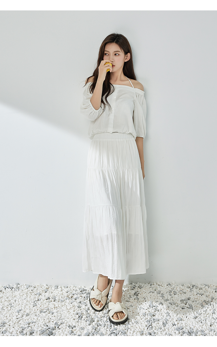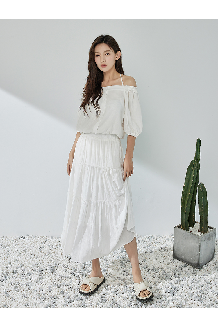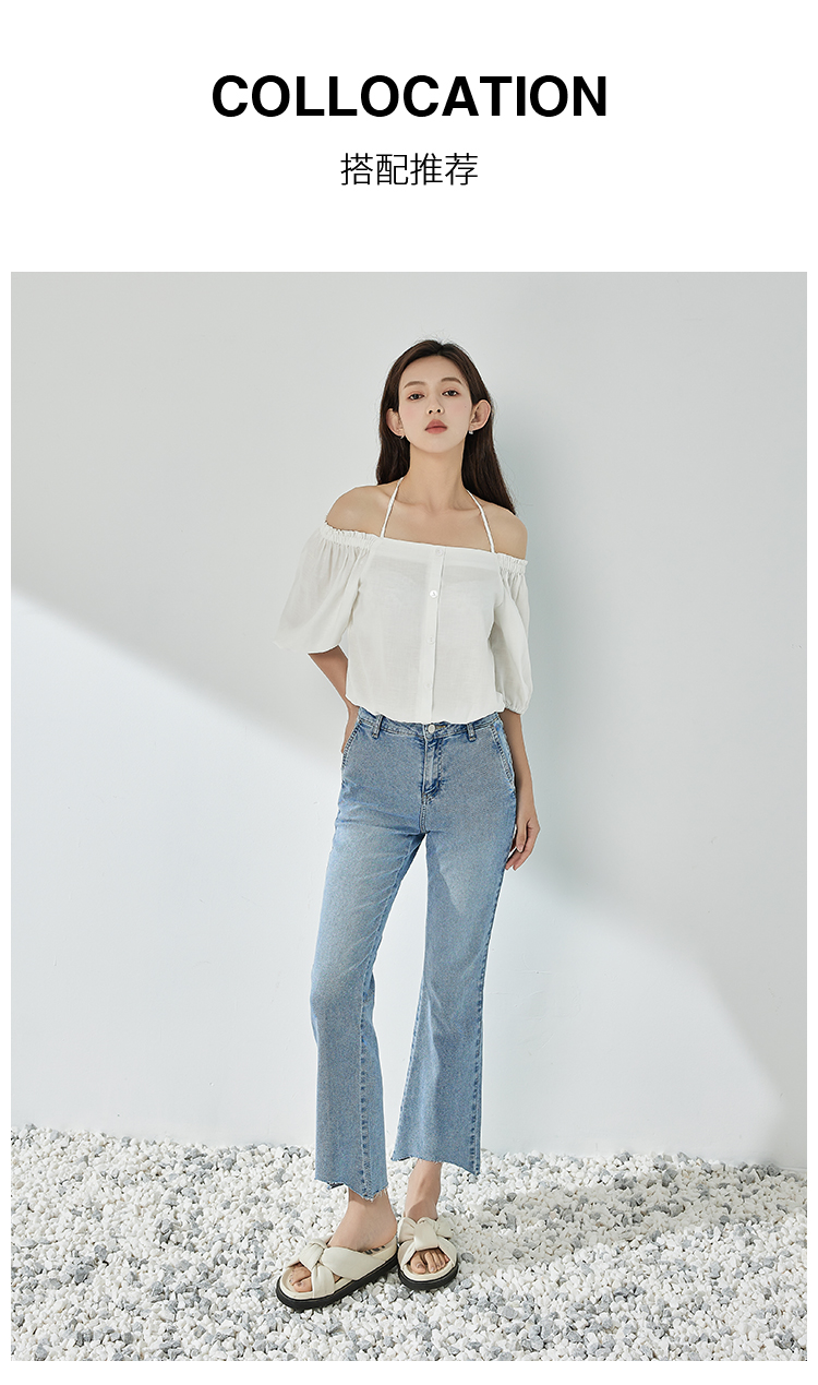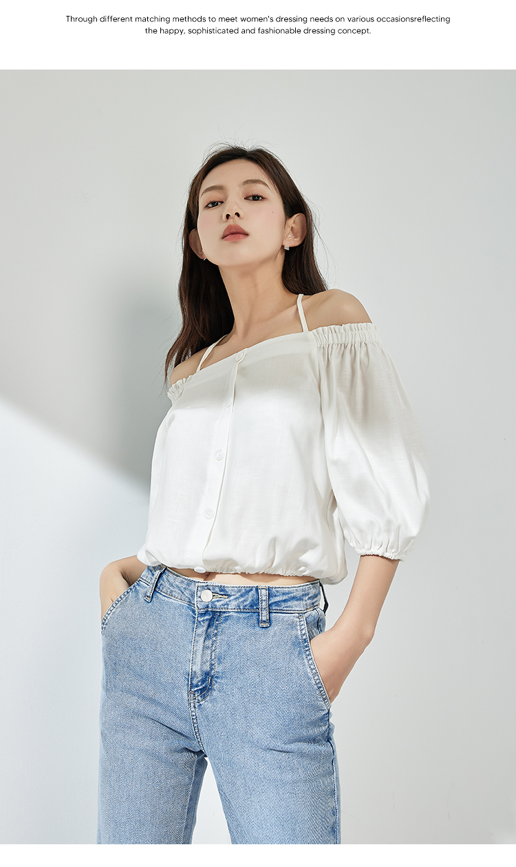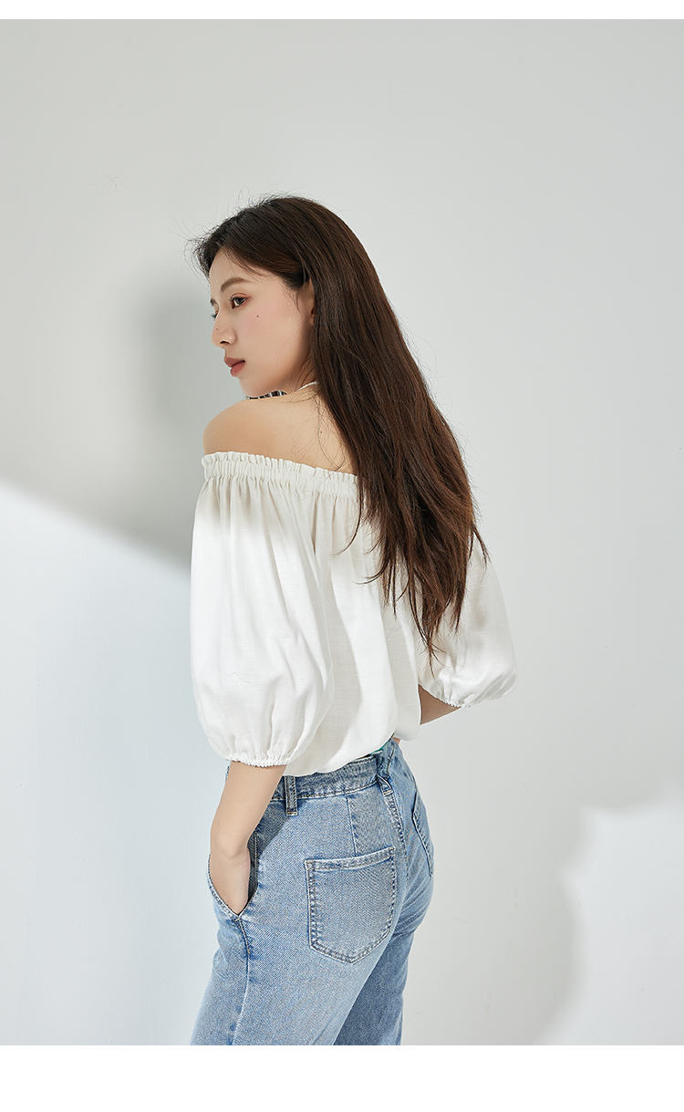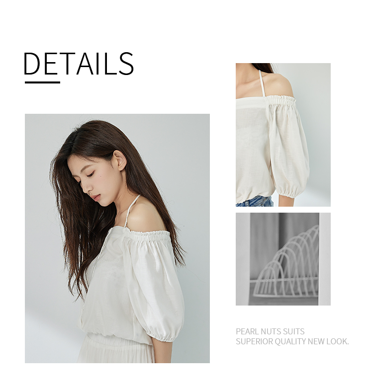NUTS一字肩上衣女夏季小众泡泡袖小个子短款娃娃衫429011363