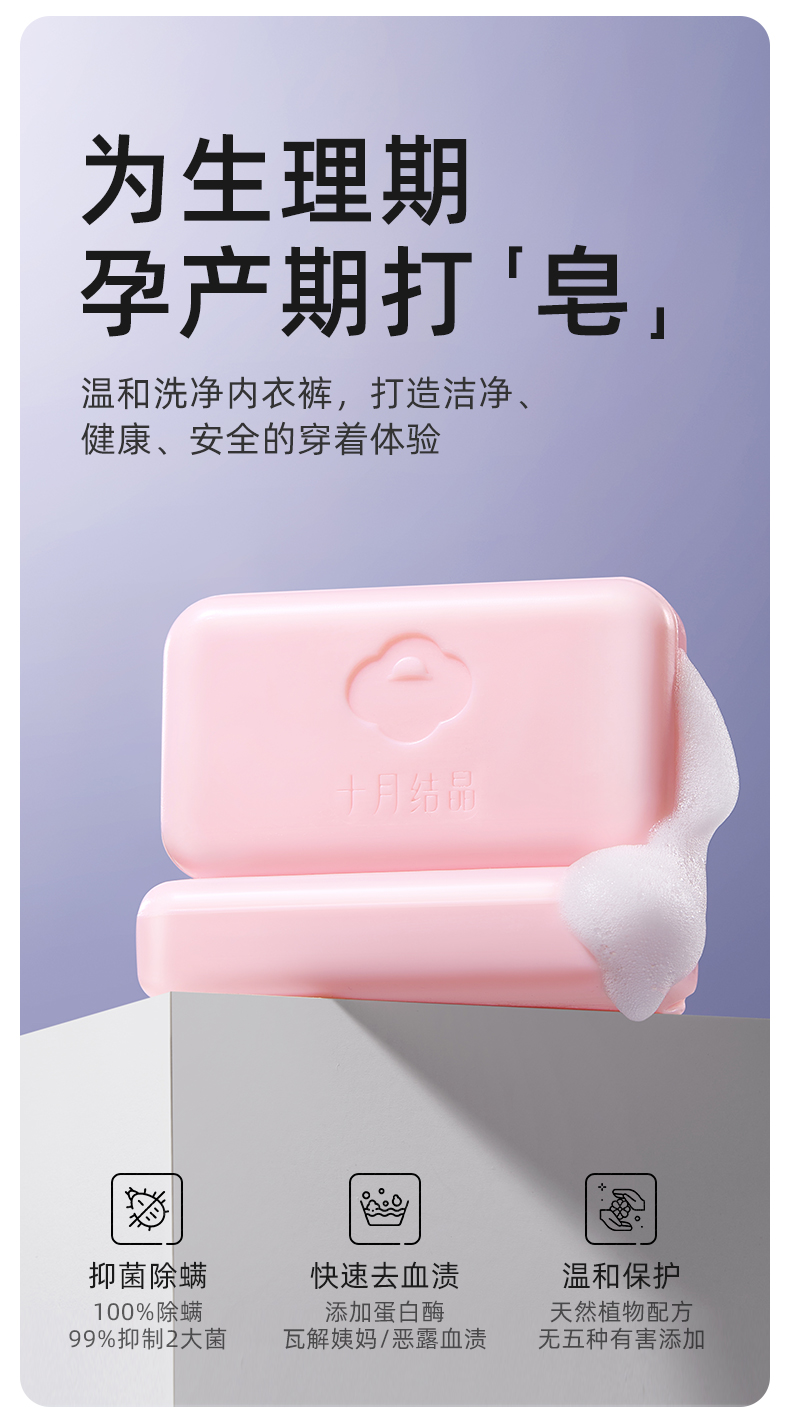 十月结晶内衣皂女士专用除螨除菌洗衣内裤皂肥皂去血渍120g*10块