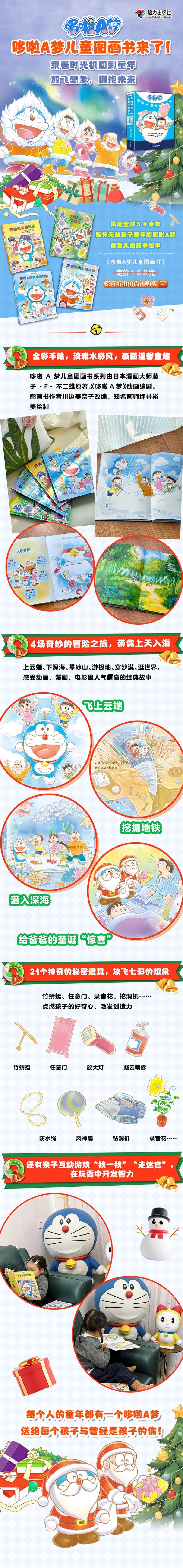 ★哆啦A梦首次推出给儿童的彩色图画书系列★日本漫画大师藤子·F·不二雄原著,《哆啦A梦》《蜡笔小新》动画编剧、图画书作者川边美奈子改编,知名画师坪井裕美绘制★根据漫画和动画中拥有人气、最适合孩子阅读的故事全新打造,淡雅水彩风,更温暖、更童趣!★上云端、下深海、攀冰山、游极地、穿沙漠、逛世界,一场场有趣的冒险激发孩子的探索心,一个个神奇的秘密道具让孩子放飞想象、拥抱未来★感人的亲情故事与温暖的友情故事,教会孩子真爱与分享、坚持与勇敢★书中还有“找一找”“走迷宫”等趣味脑力游戏,边读边玩,增加阅读乐趣★也是一套送给大朋友的礼物,打开本书,乘着时光机回到童年,重温最温馨的回忆
