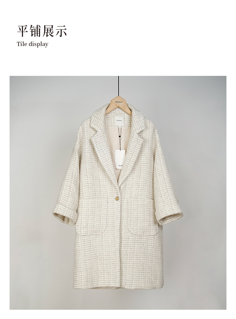 oldcolour秋冬款气质百搭厚实格子长款毛呢外套女GL41048929