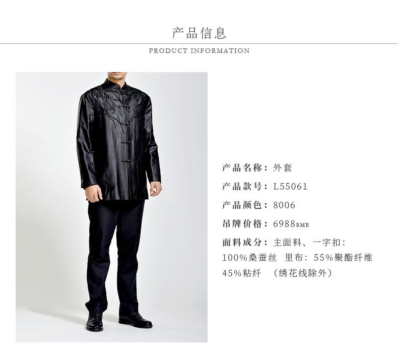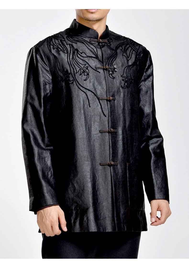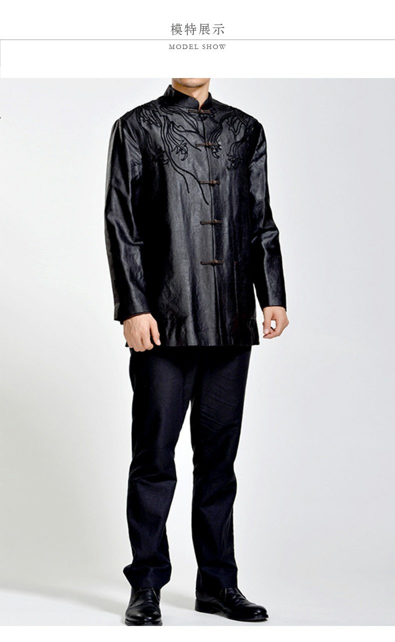 TANGY Collection/天意精品春秋新品香云纱刺绣中式莨绸男士外套